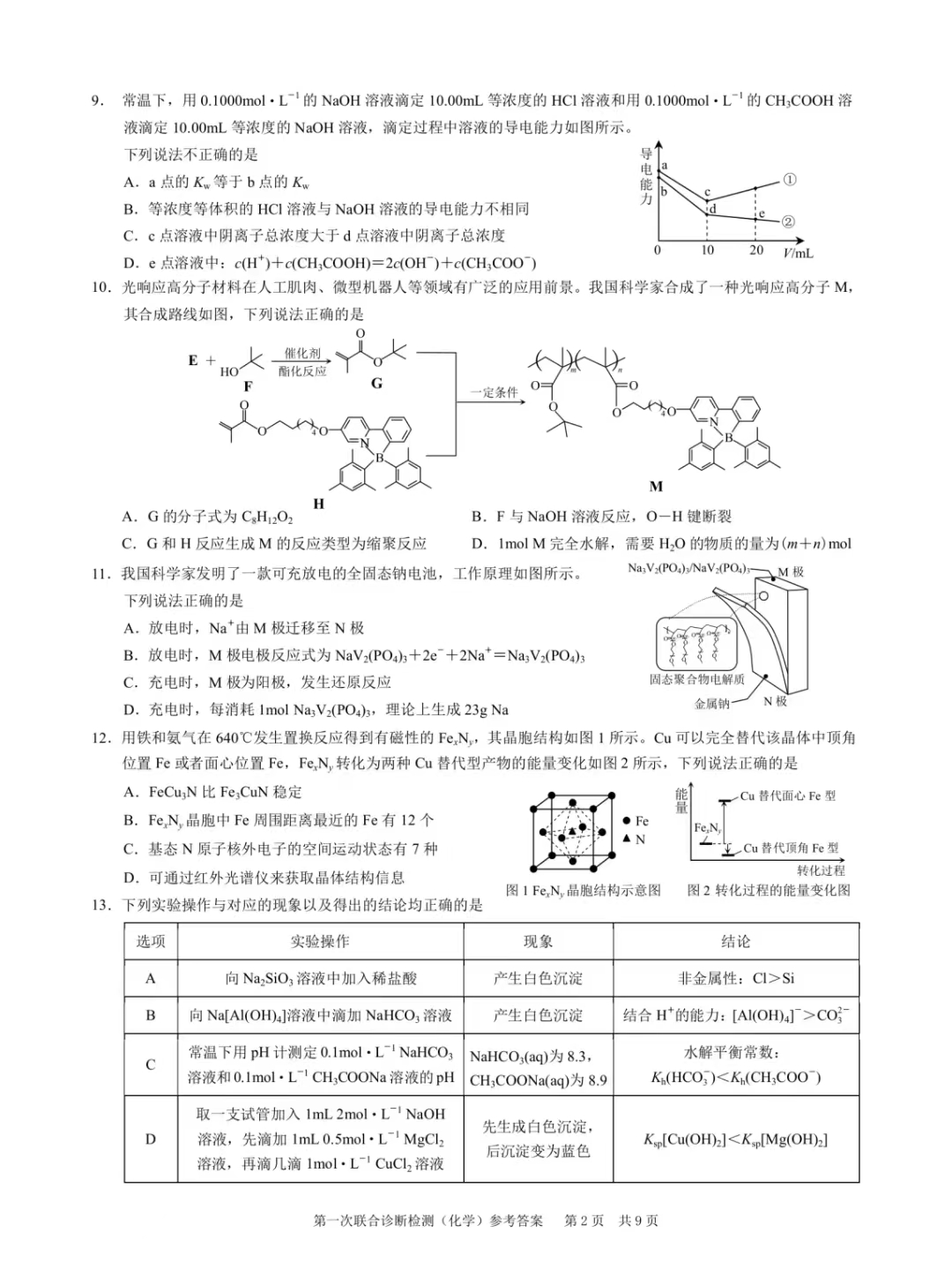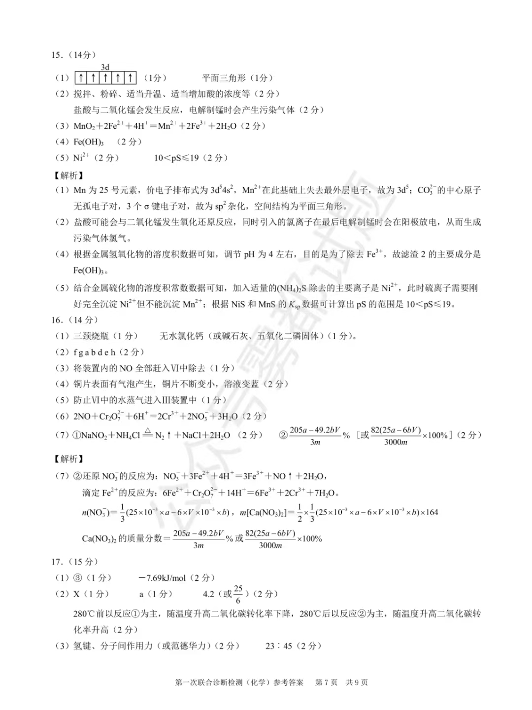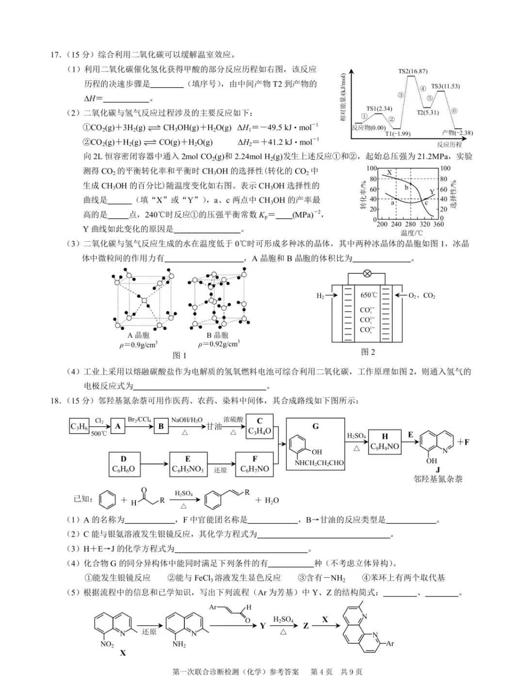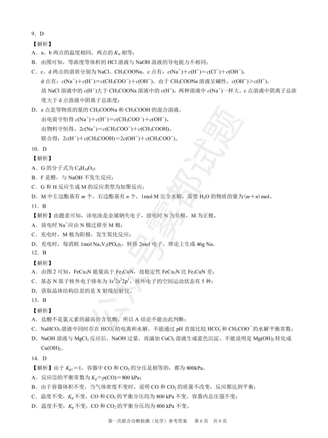 二、重庆一诊2024物化生答案及试卷解析(康德卷)