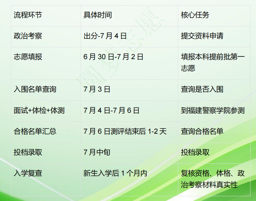 高考结束后,在出分前后(约6月24日起)即可启动政治考察。这是与其他省份不同的关键点,务必提前准备材料,前往公安机关办理。