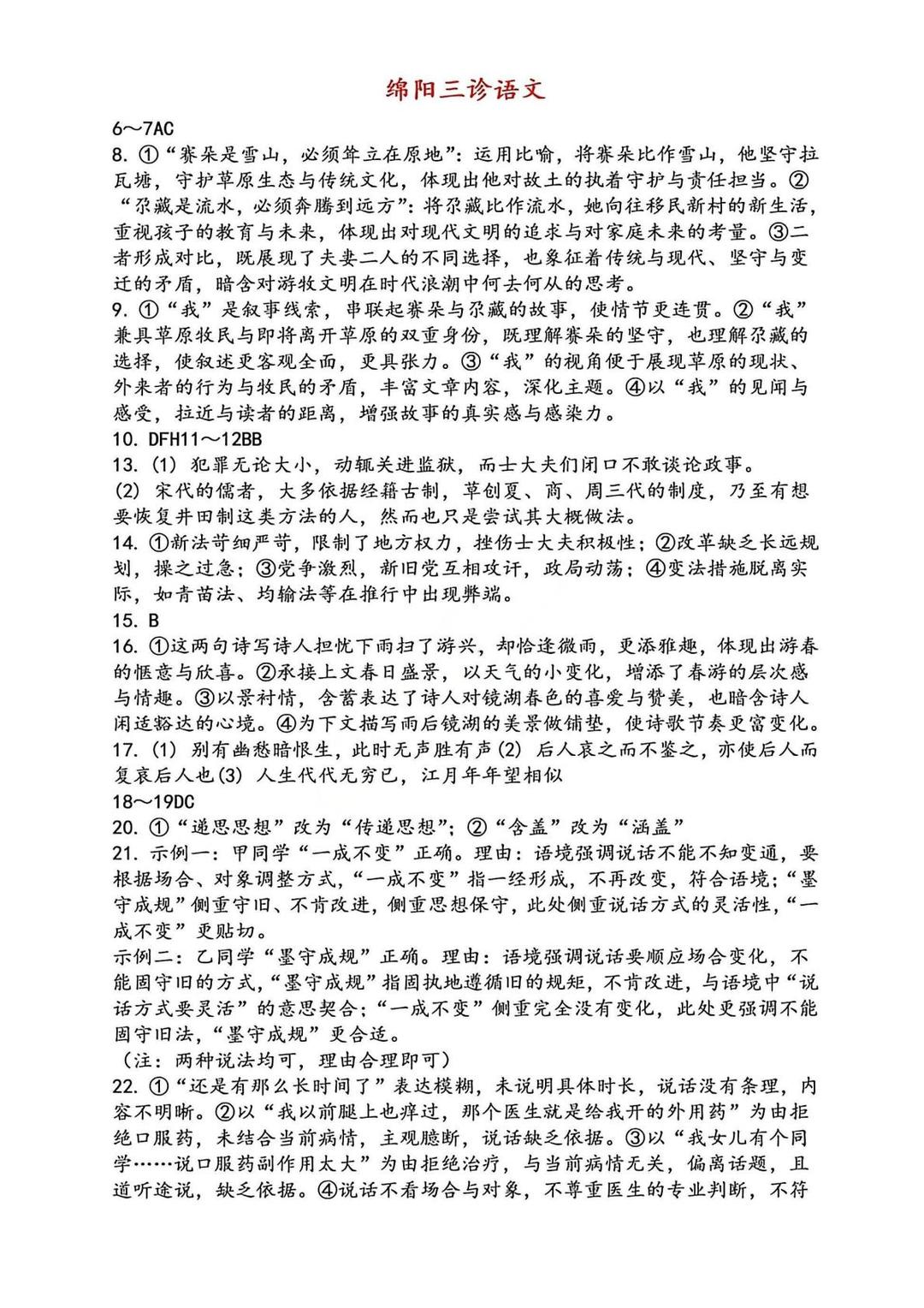 绵阳三诊是高考前最后一次全市大模考,请同学们以正式高考的态度认真对待,考后及时复盘错题,调整心态。我们将第一时间为大家整理全科答案解析,敬请期待!