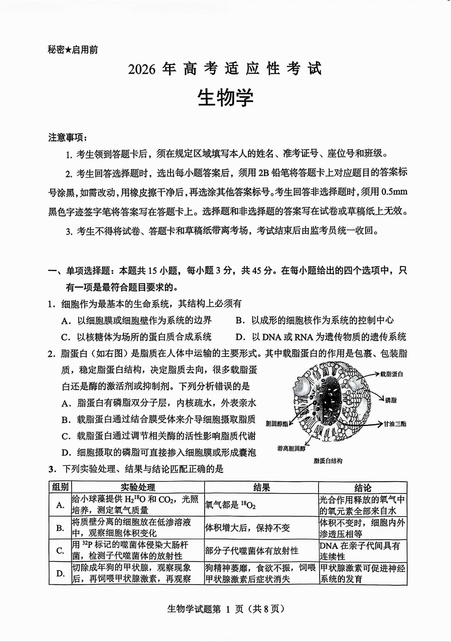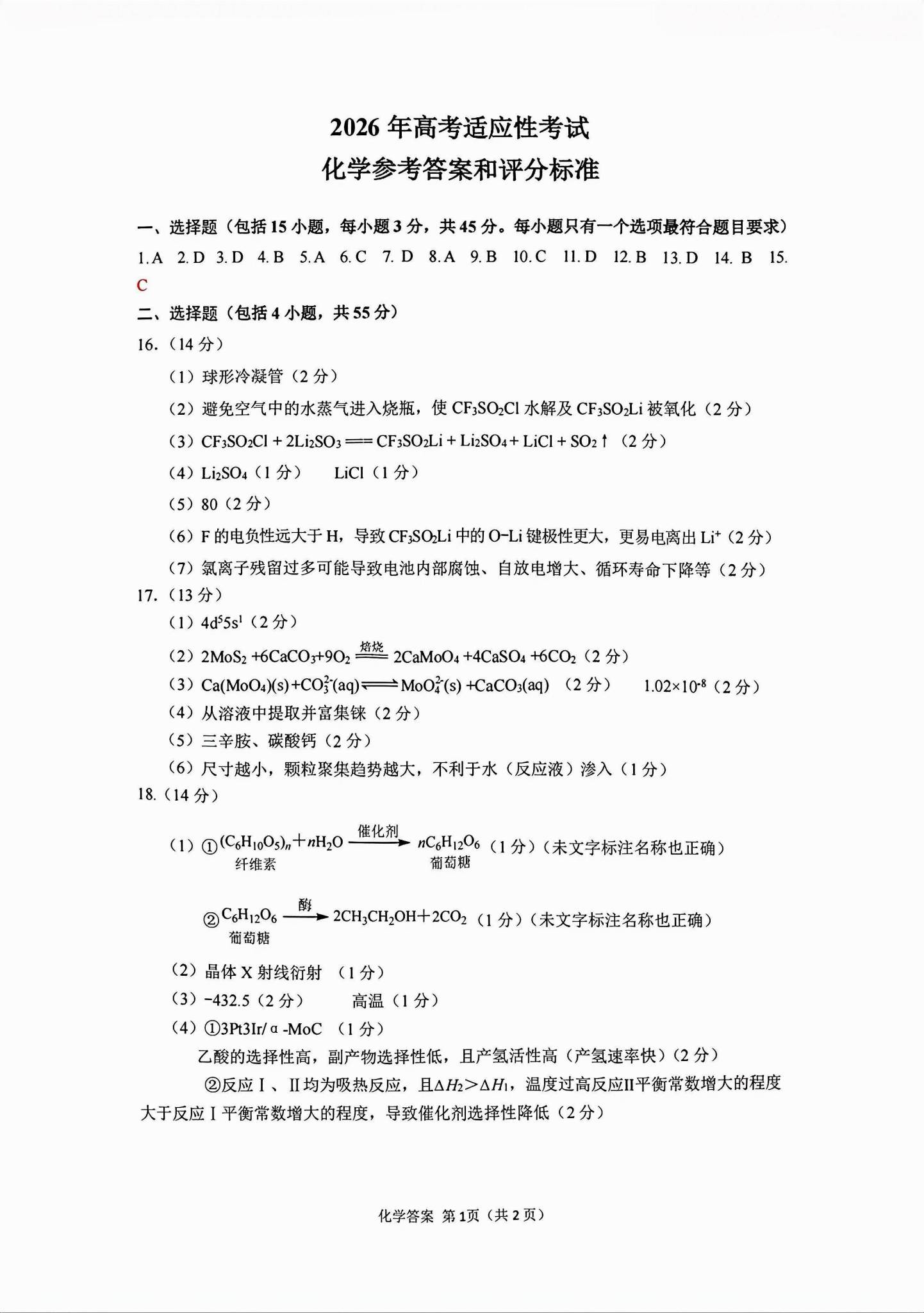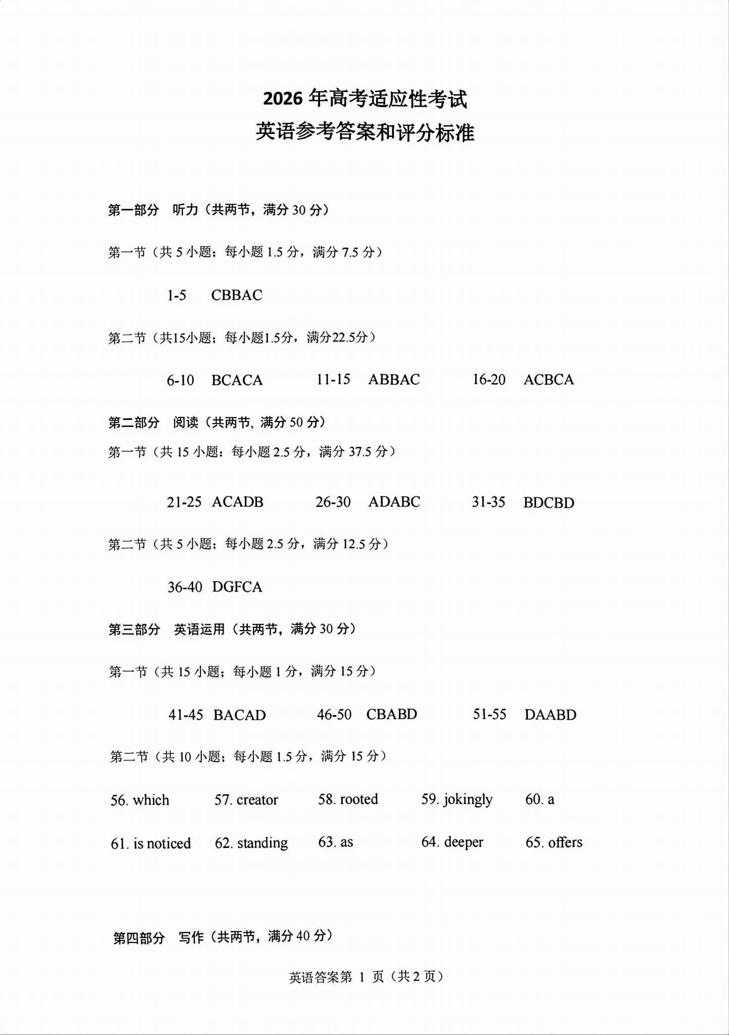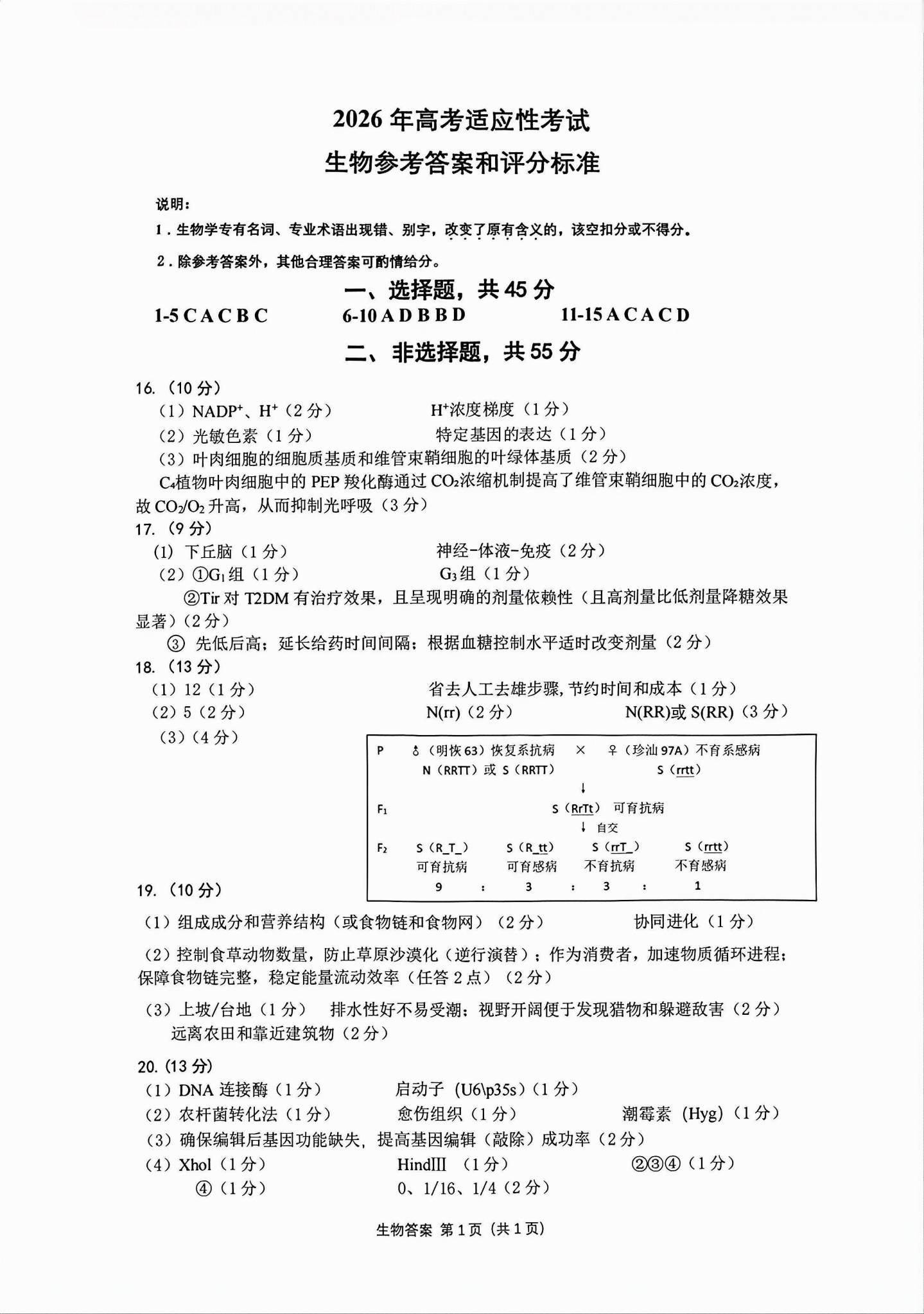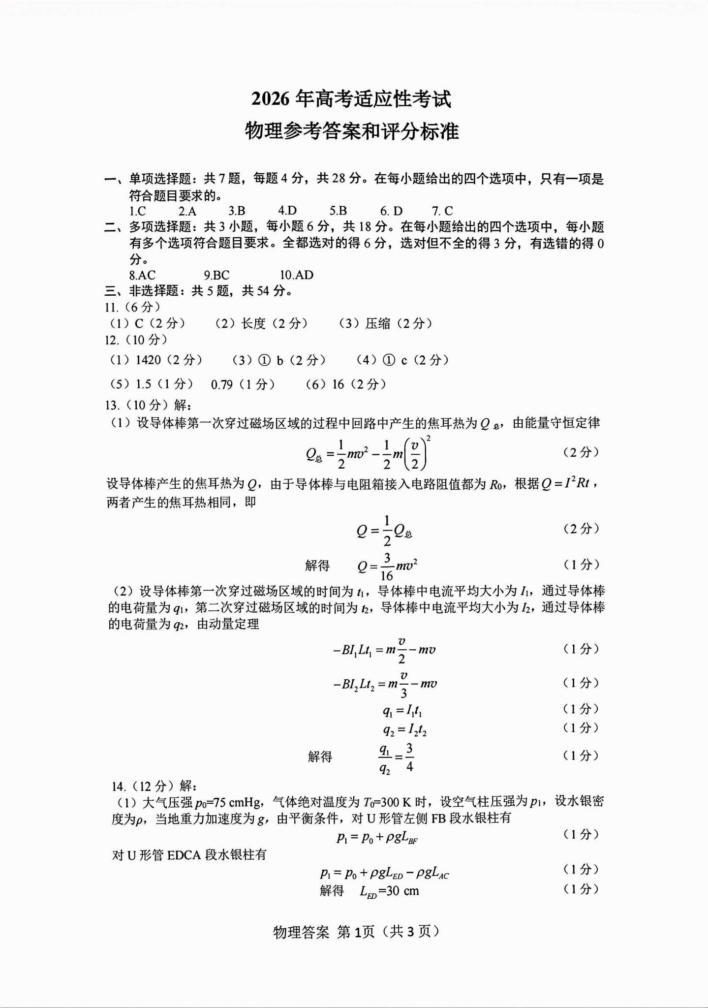 一、2026绵阳高三三诊各科试卷答案(必考科目)