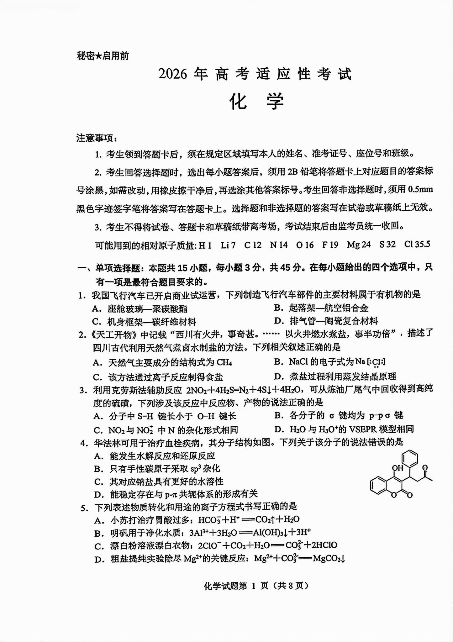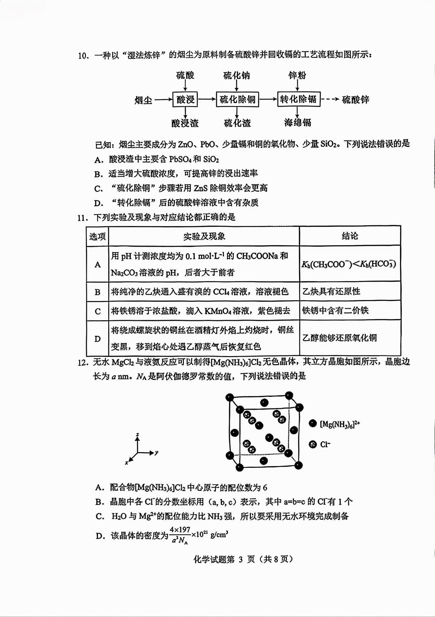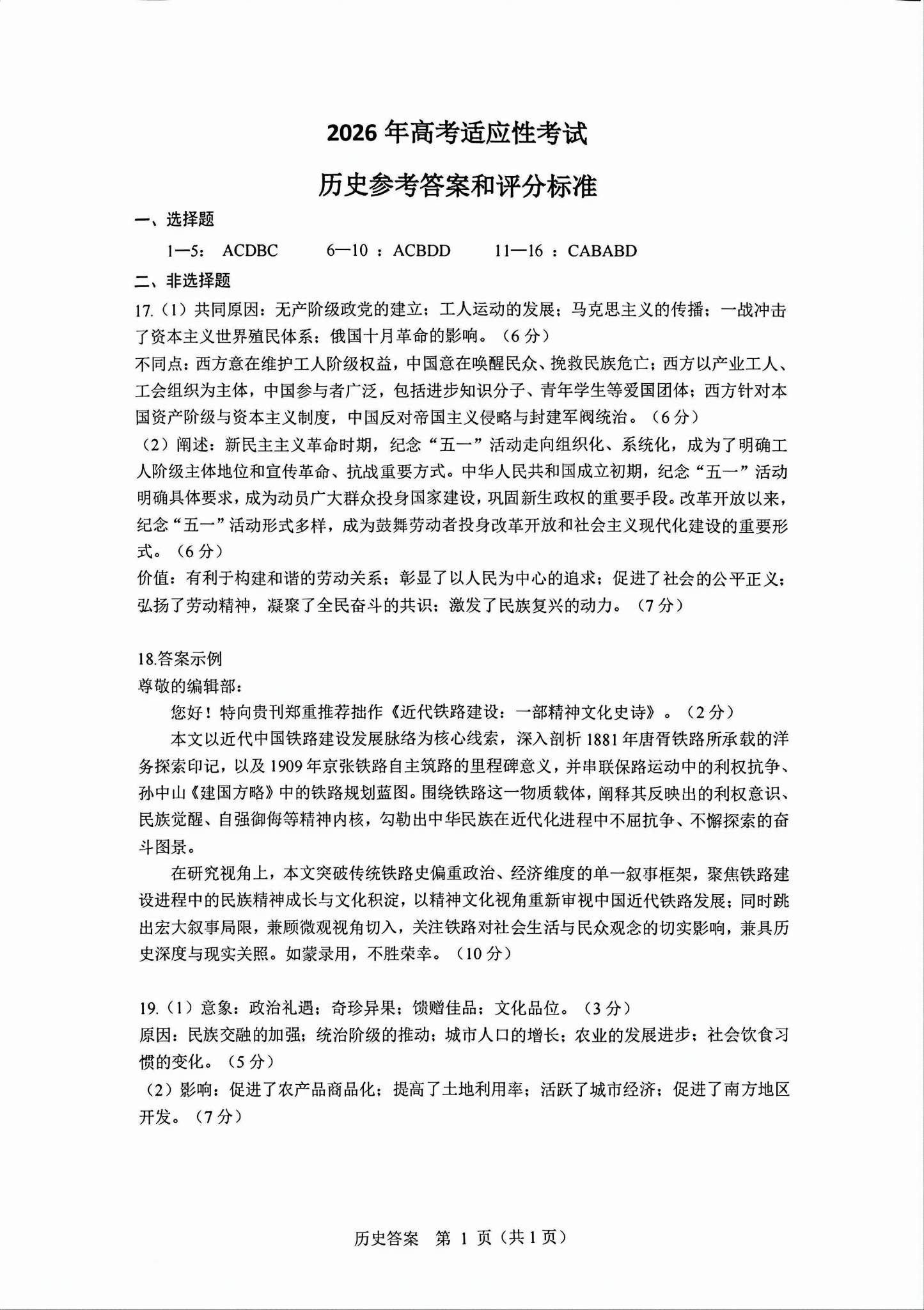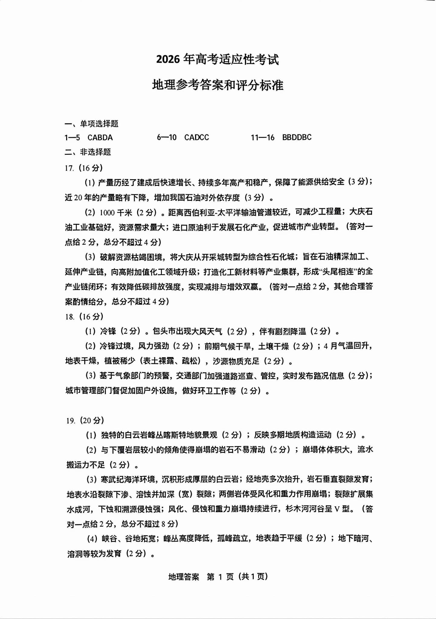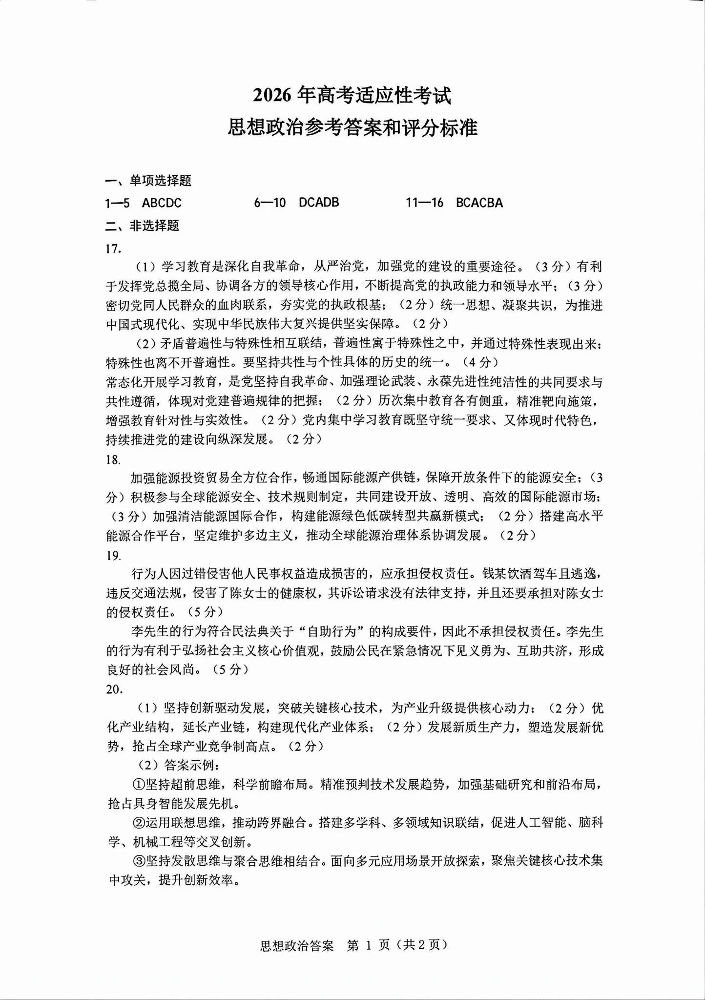 一、2026绵阳高三三诊各科试卷答案(必考科目)