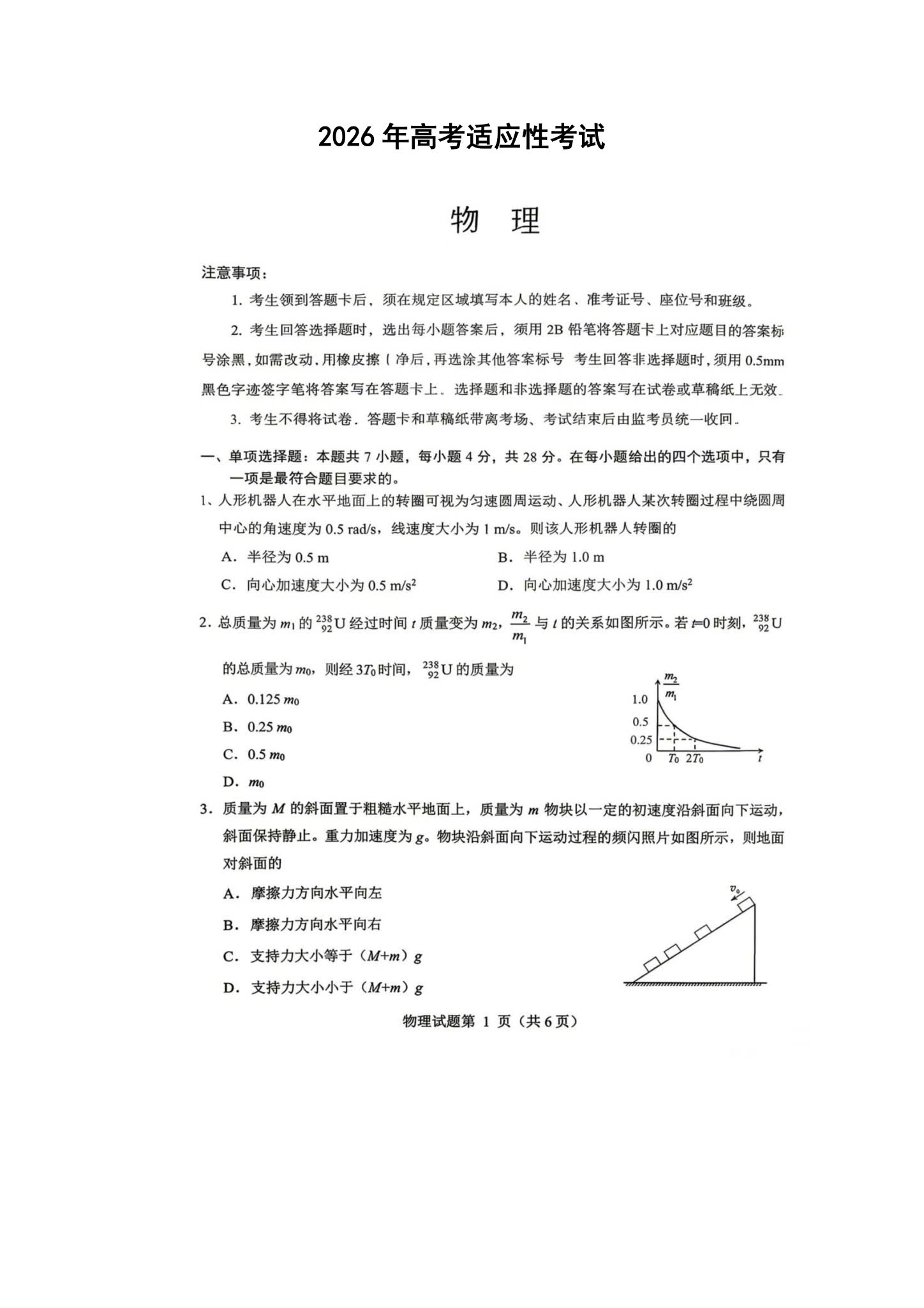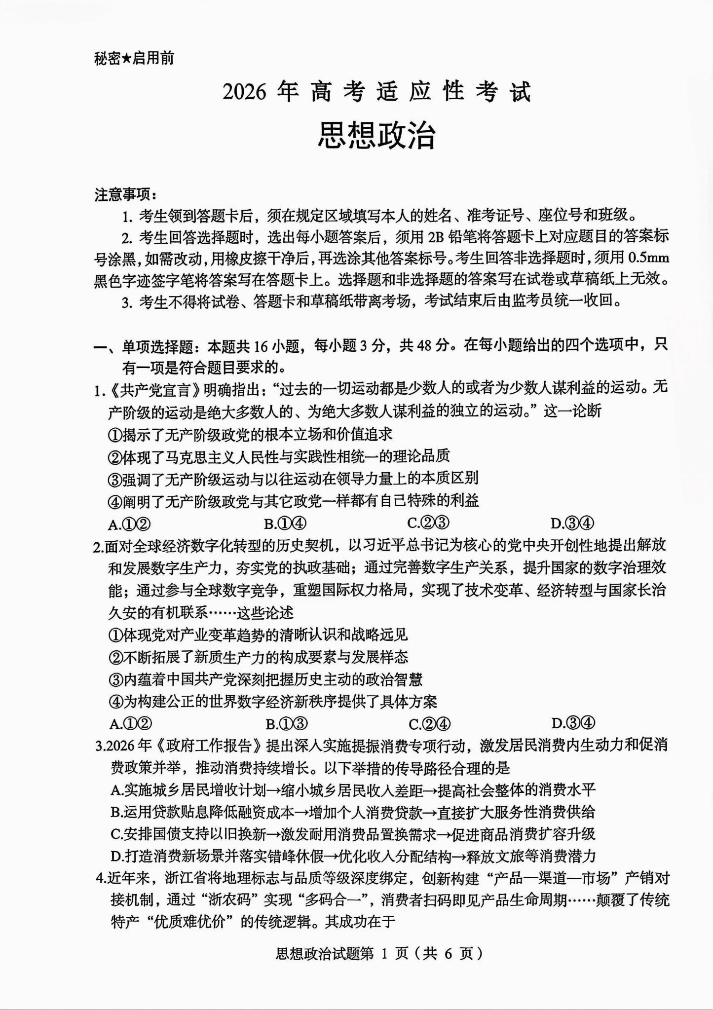 物理、历史、化学、生物、政治、地理为选考科目,试题及答案将在各科目考试结束后立即更新。请考生根据自身选考科目关注对应场次。