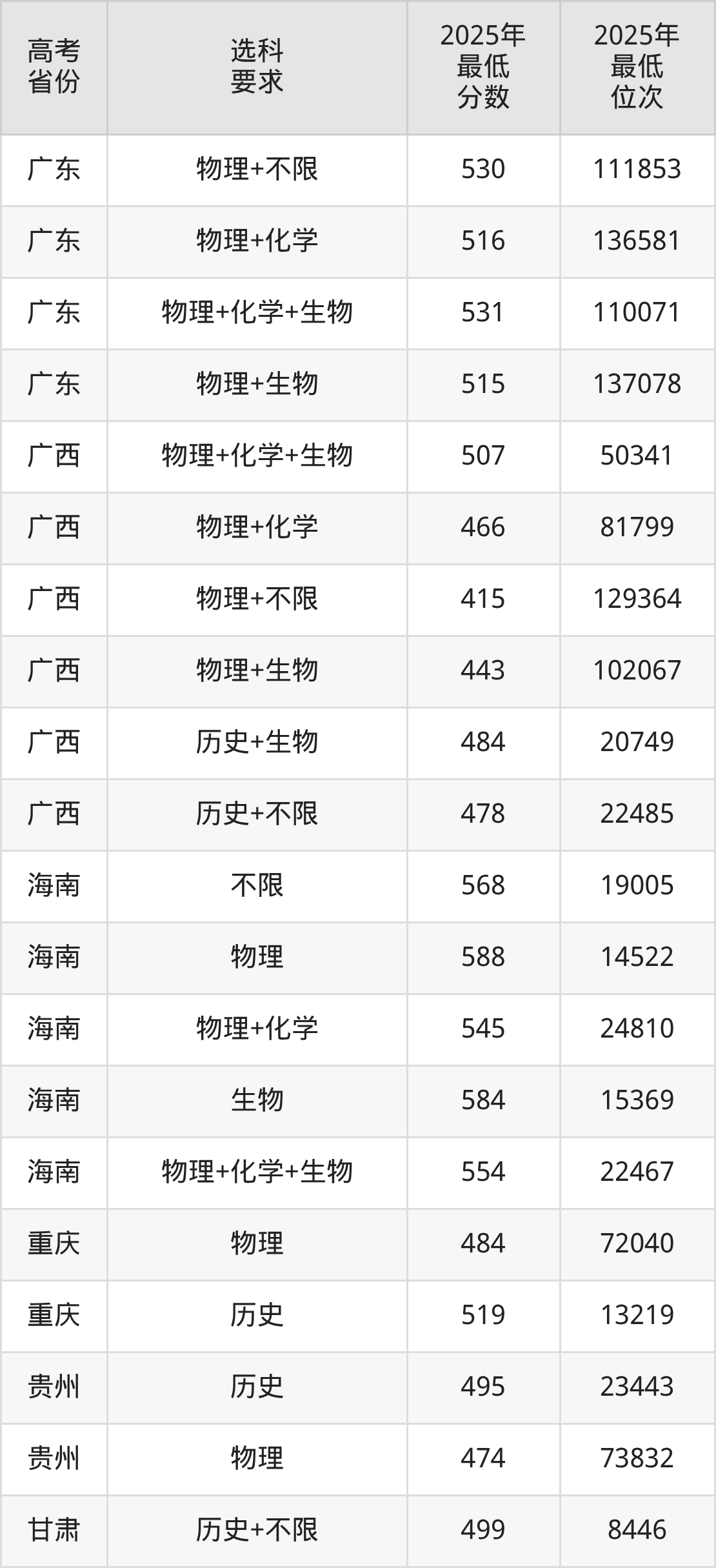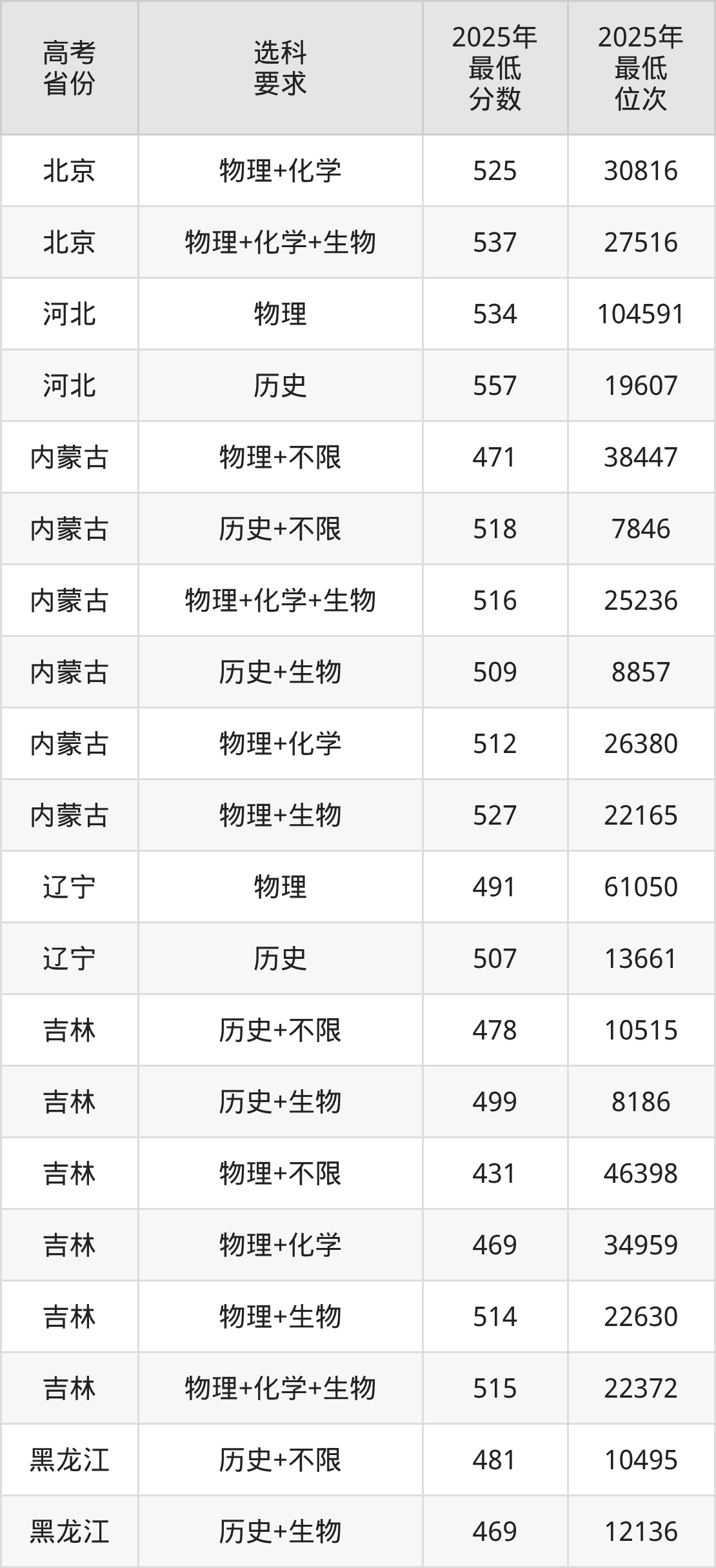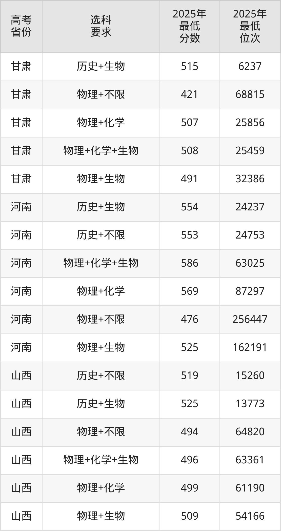 在2025年山西高考物理类招生时,211收分最低的是东北林业大学第304组(国家专项计划),最低分是448分、位次是100390位。再看山西医科大学,2025年在山西物理类的最低录取分数线是494分,最低位次是64820位。