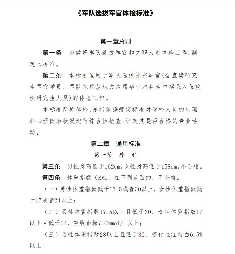 4.体重指数(BMI)、色觉等均有明确规定。
