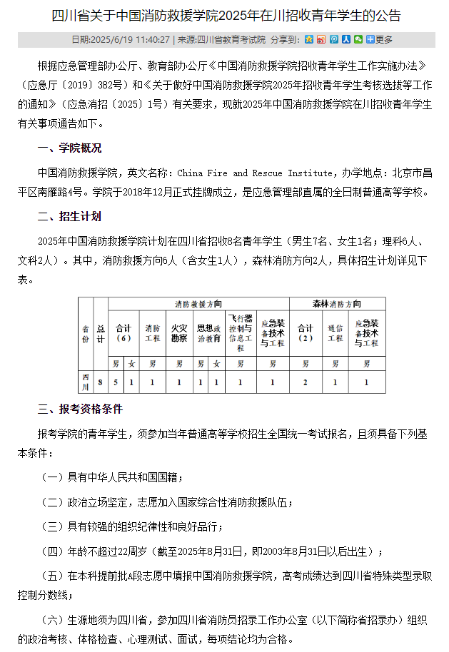 七、消防救援学院招生