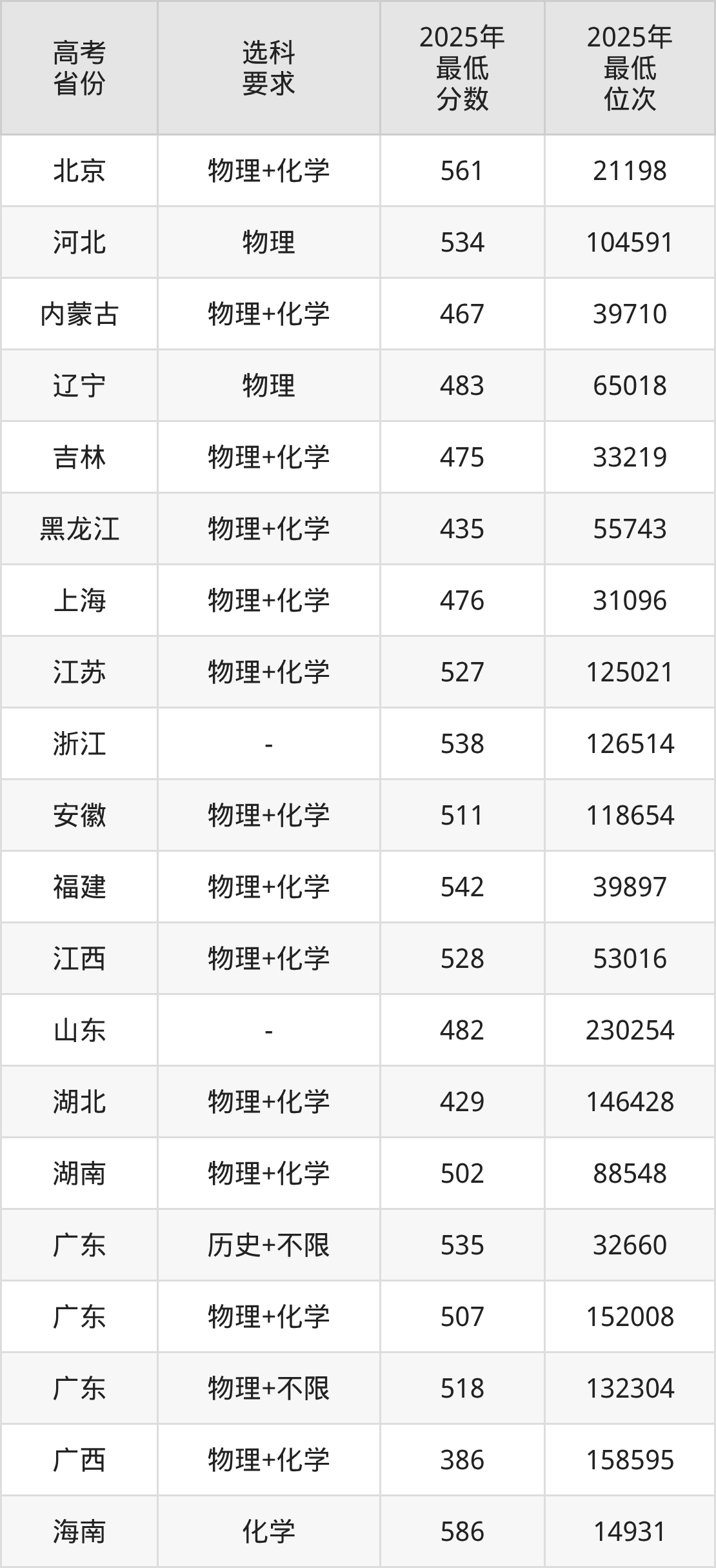 在2025年广东高考物理类招生时,211收分最低的是东北农业大学216组(联合培养),最低分是459分、位次是238703位。再看广东医科大学,2025年在广东物理类的最低录取分数线是507分,最低位次是152008位。