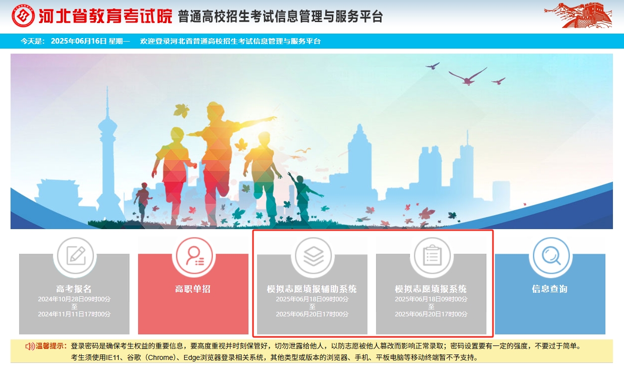 河北省教育考试院定于2025年6月18日9:00至20日17:00开放志愿填报模拟演练系统。这一时间段与2024年完全一致,体现了河北省对考生适应性训练的高度重视。模拟填报的核心价值在于: