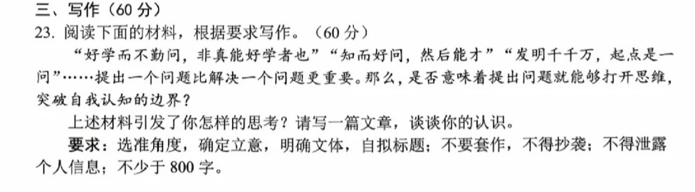 作文题以“提问与认知突破”为核心,引导考生思考提问的价值,详情见第二部分解析。