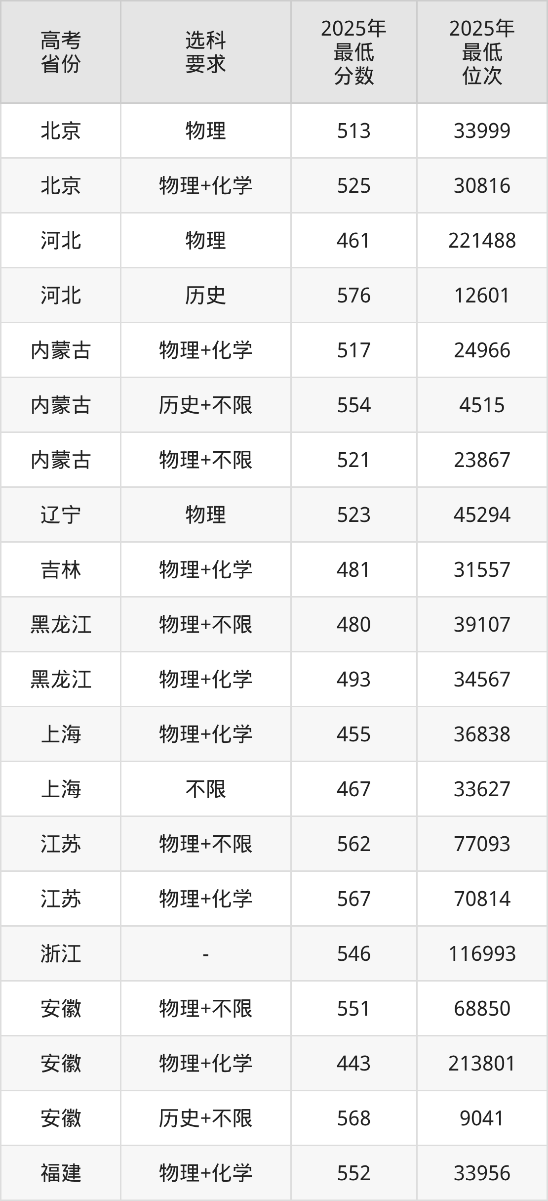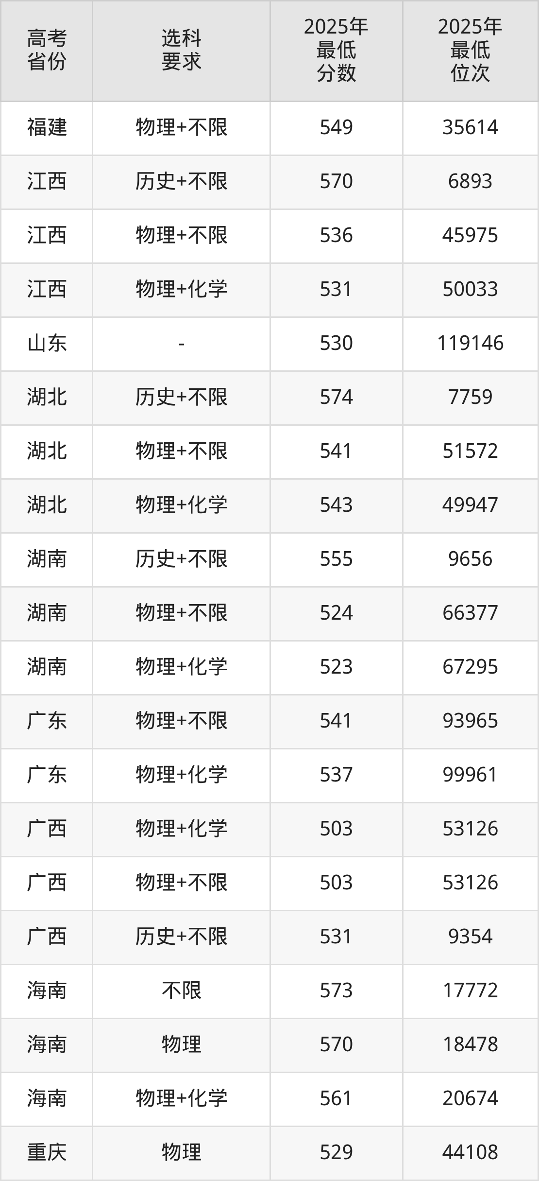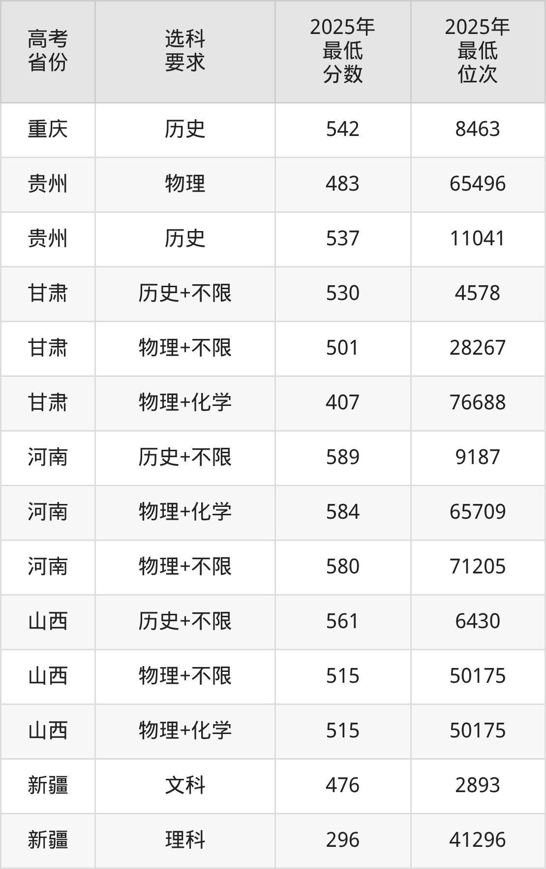 在2025年新疆高考理科招生时,985收分最低的是东北大学秦皇岛分校,最低分是523分、位次是6164位。再看石河子大学,2025年在新疆理科的最低录取分数线是296分,最低位次是41296位。