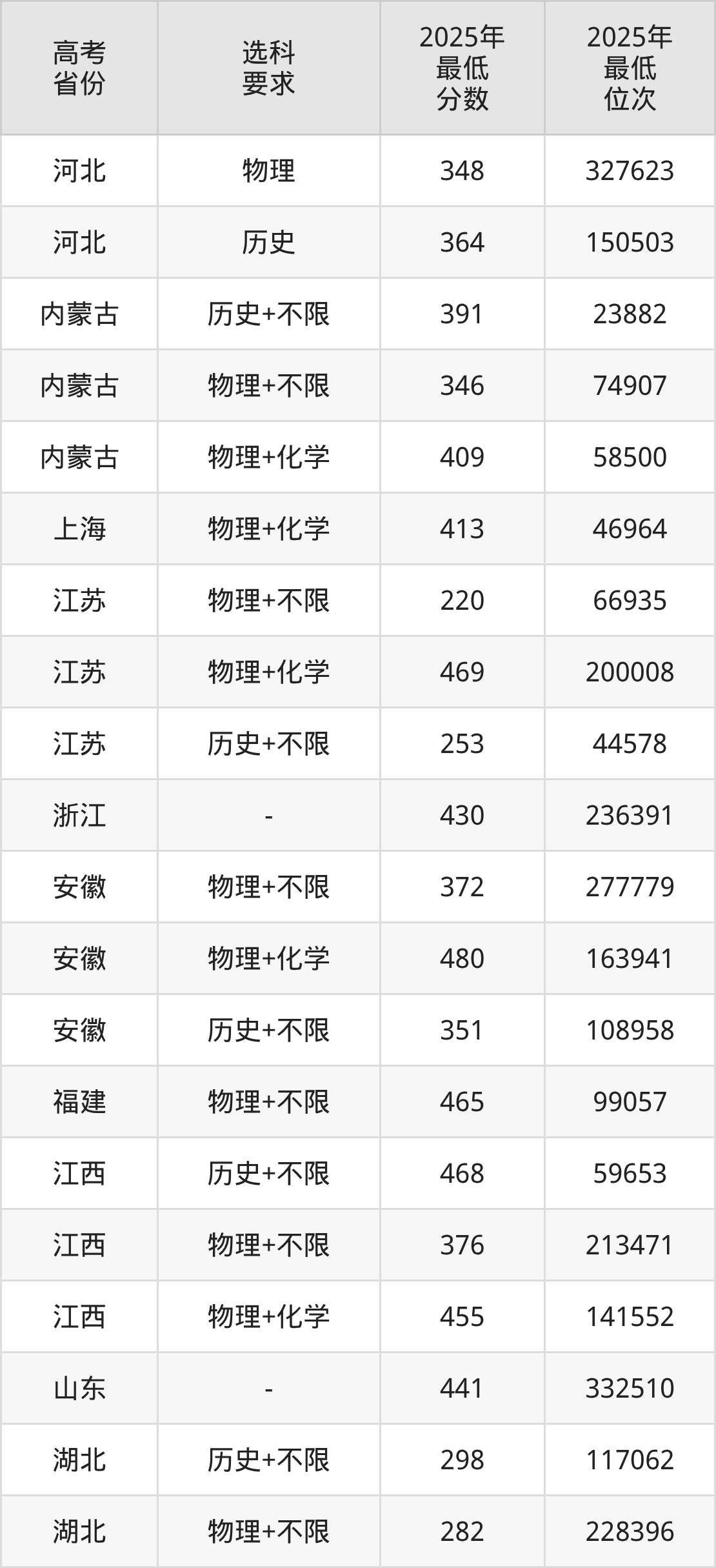 在2025年湖北高考物理类招生时,公办本科收分最低的是新疆工程学院第02组,最低分是224分、位次是243851位。再看武汉纺织大学外经贸学院,2025年在湖北物理类的最低录取分数线是282分,最低位次是228396位。