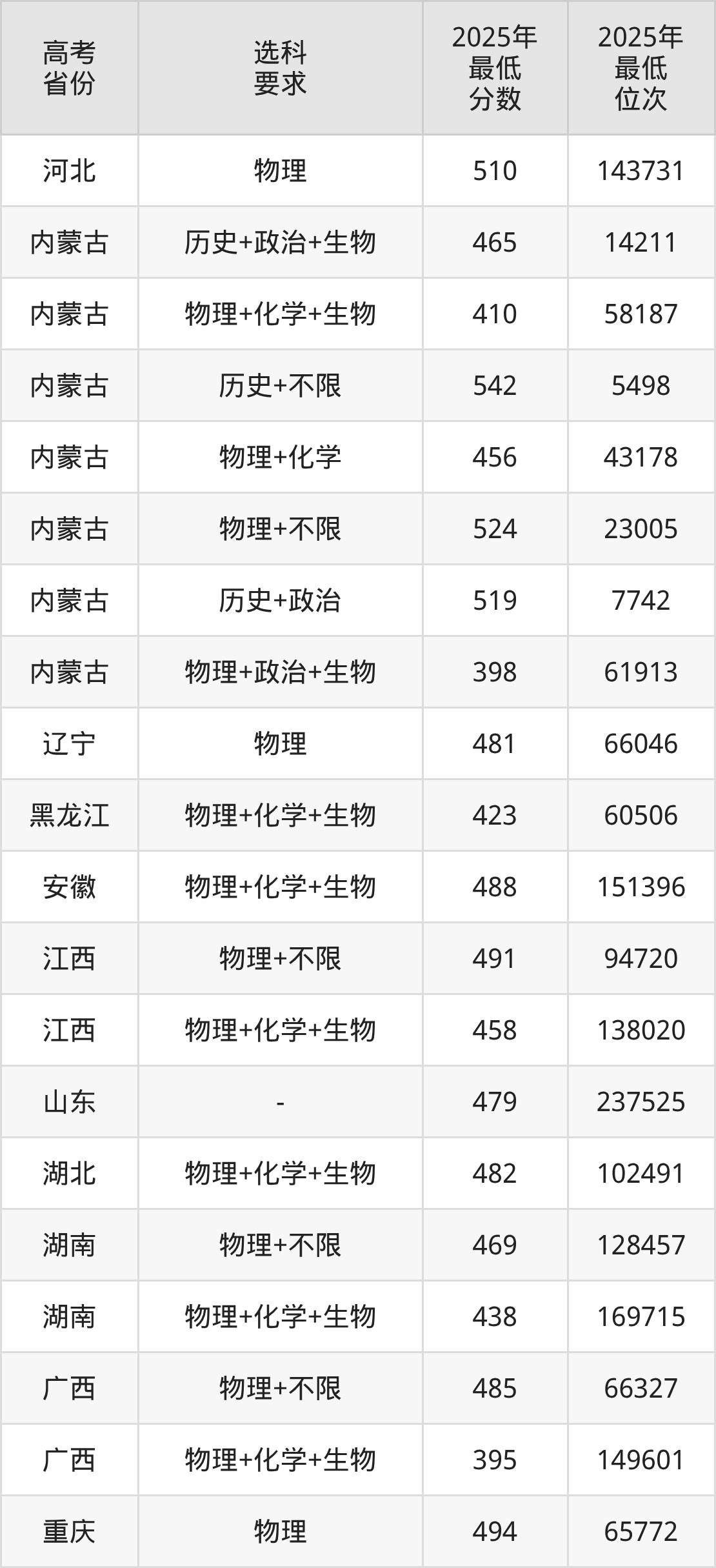 下方是内蒙古科技大学包头医学院2025年在内蒙古自治区录取分数线比较高的3个专业,2026年高考生可以参考!