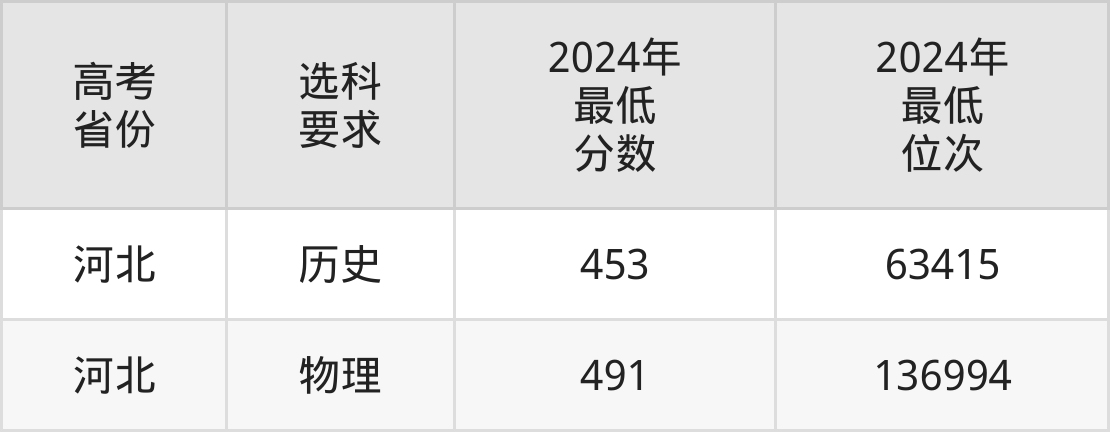 在2024年河北高考物理类招生时,公办本科收分最低的是桂林师范学院,最低分是317分、位次是353102位。再看华北理工大学冀唐学院,2024年在河北物理类的最低录取分数线是491分,最低位次是136994位。