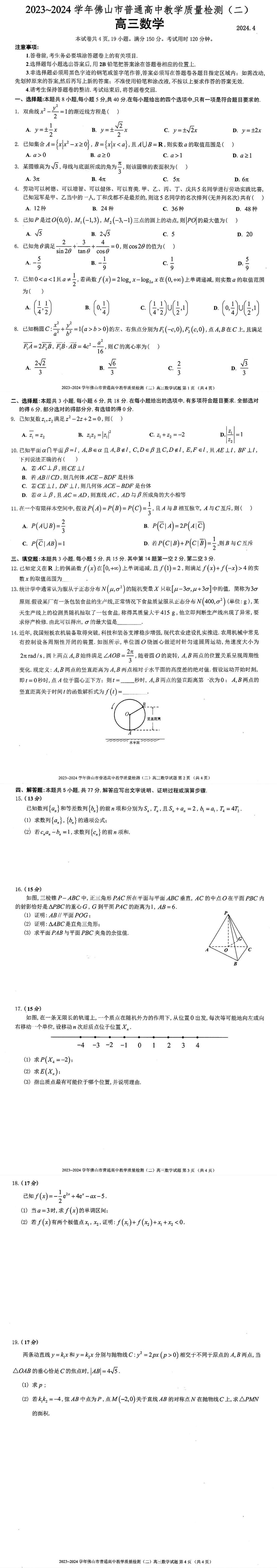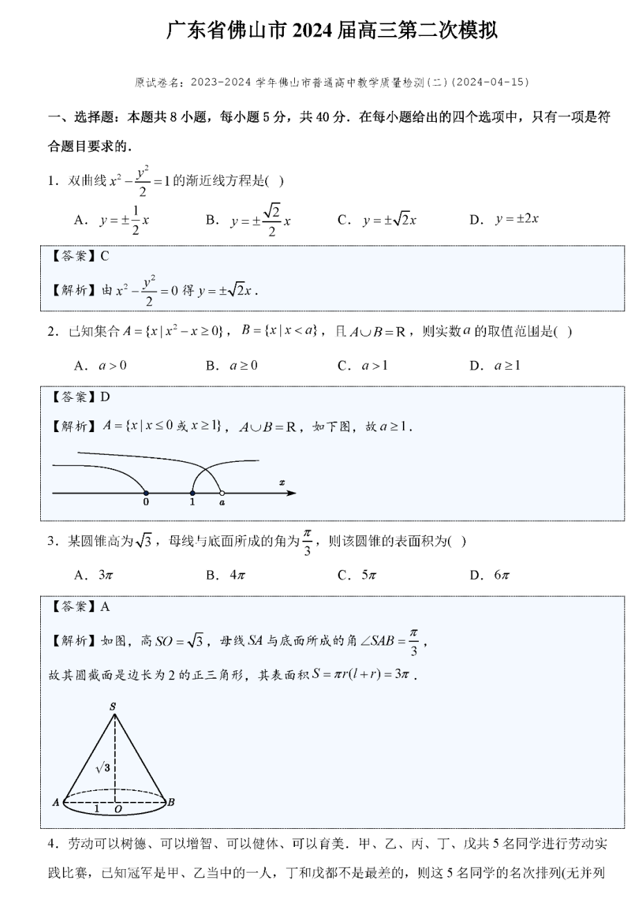 答案及试卷解析:佛山二模数学答案及试卷真题将在考试结束后及时更新,帮助同学们整理错题,调整考试心理状态。