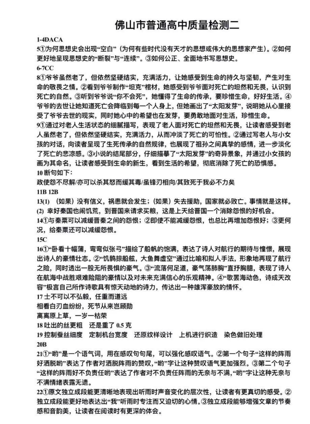 答案及试卷解析:佛山二模语文答案及试卷解析将在语文考试结束后迅速更新,方便同学们核对试卷,回顾考试表现,了解考试题型。