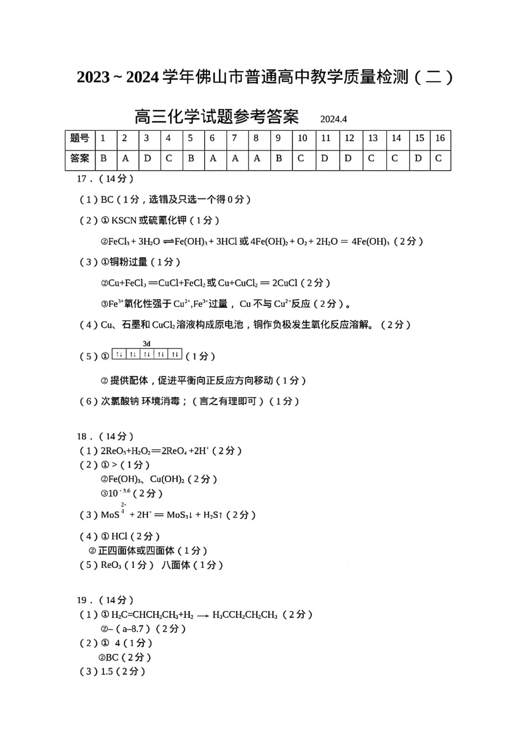 答案及试卷解析:佛山二模化学的答案及试卷真题将在考试结束后及时更新,确保同学们能够及时回顾考试内容,整理化学错题。
