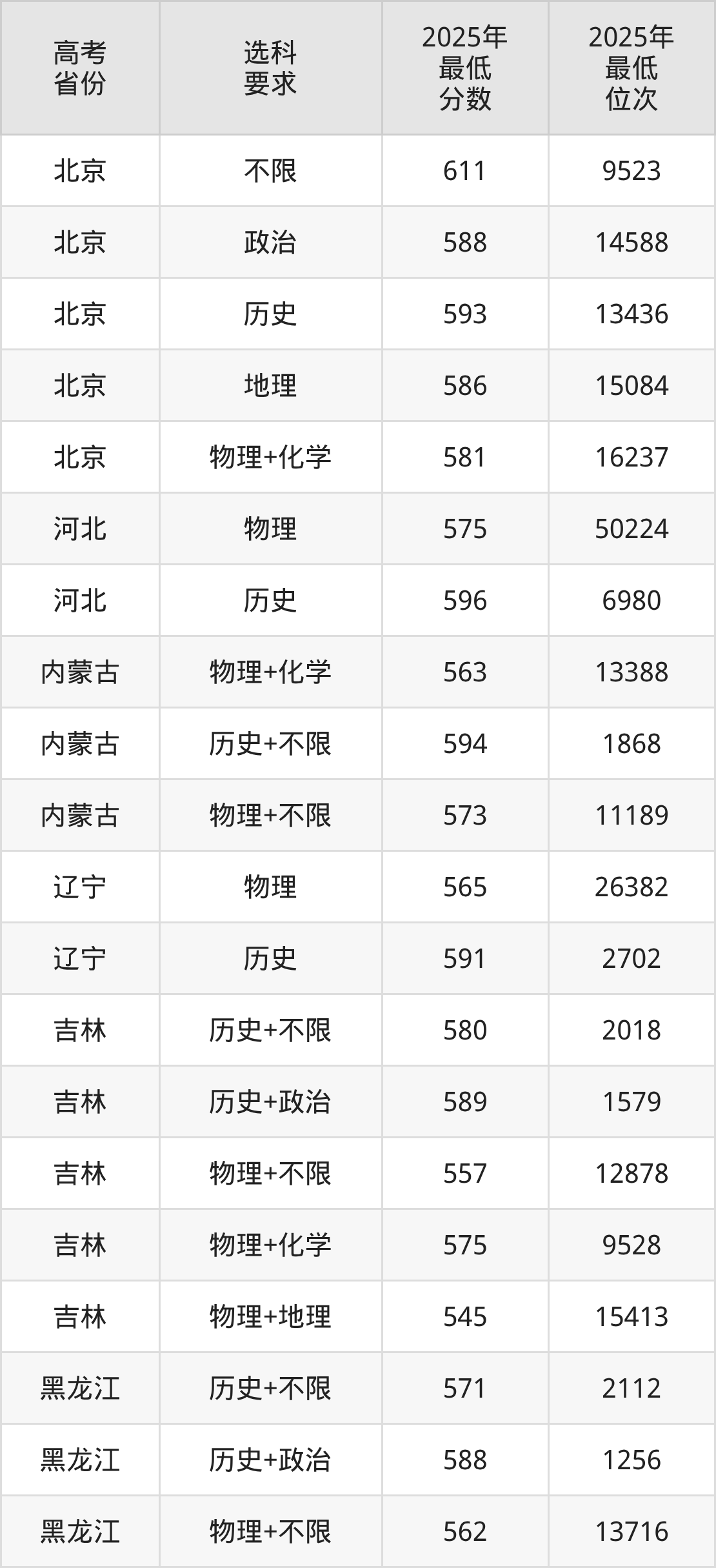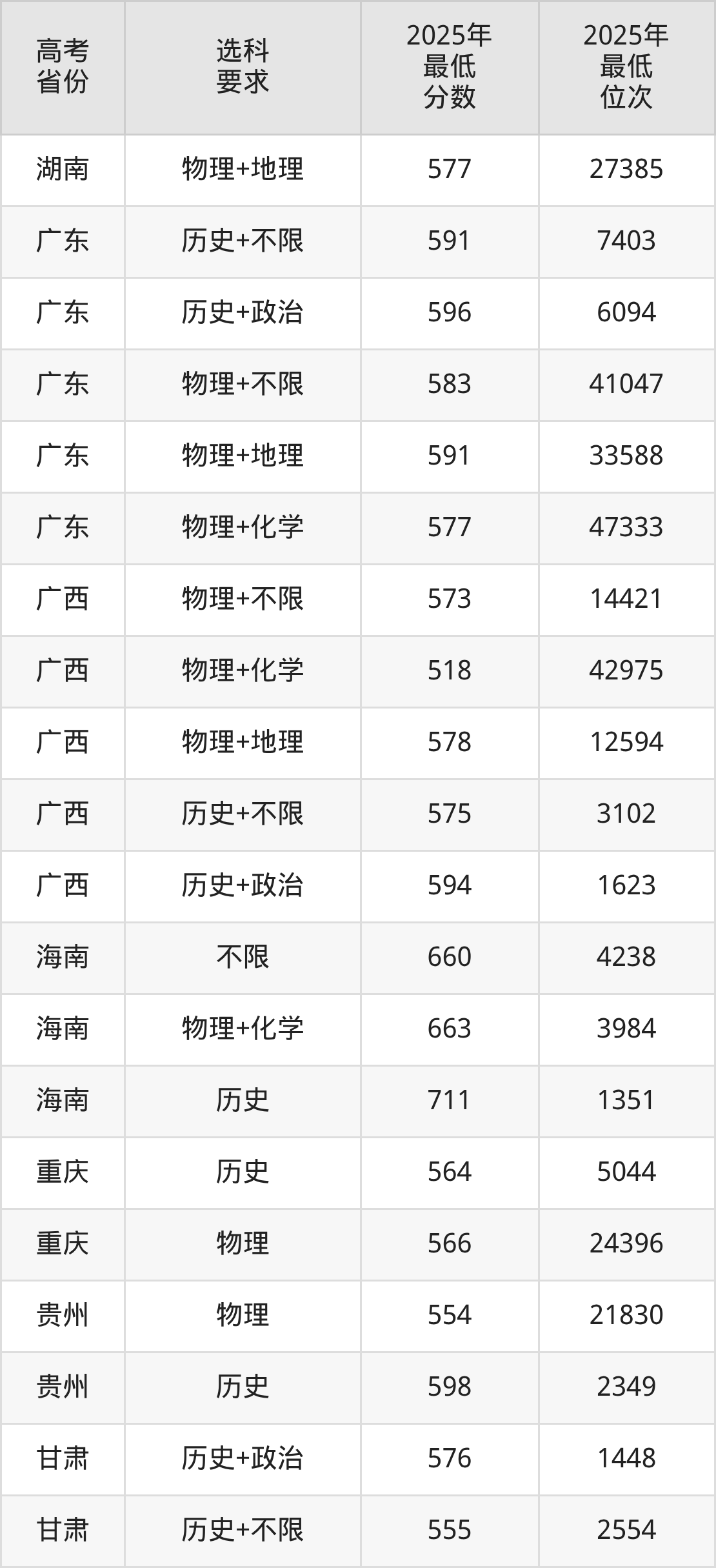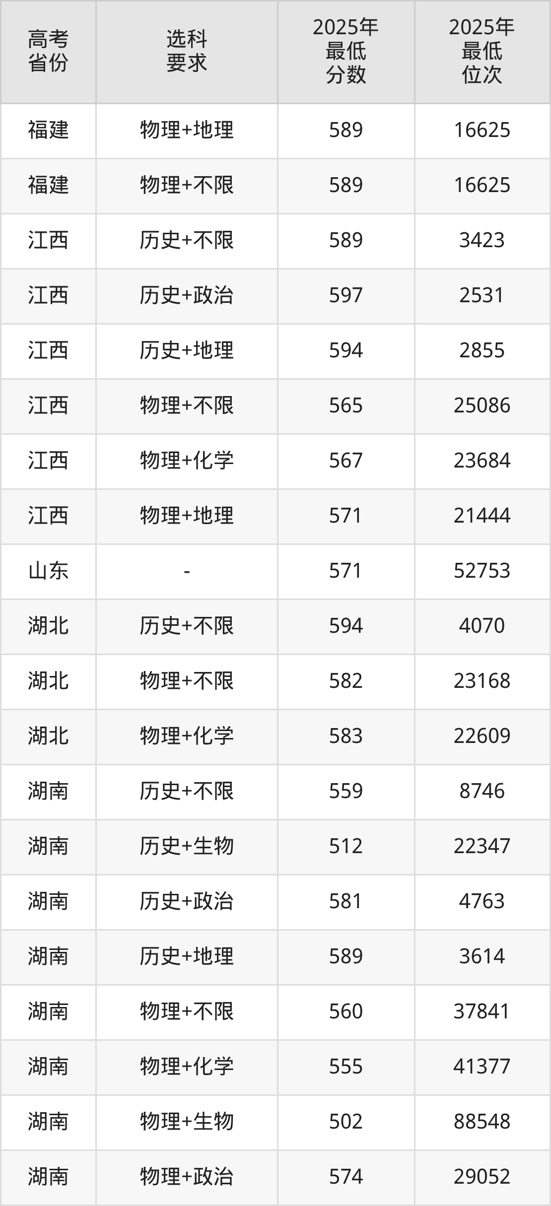 在2025年湖南高考物理类招生时,985收分最低的是西北农林科技大学第209组(中外合作办学或国际项目),最低分是571分、位次是30892位。再看湖南师范大学,2025年在湖南物理类的最低录取分数线是502分,最低位次是88548位。