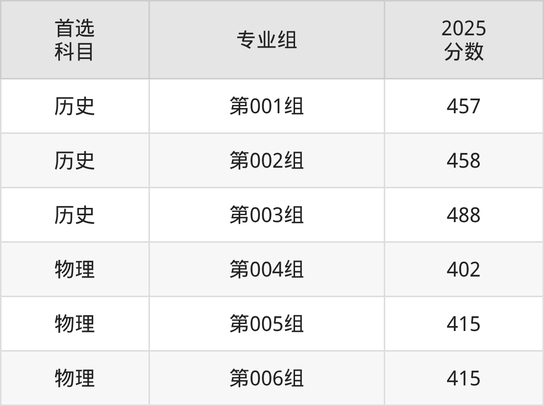 | 大学名称 | 选科 要求 | 2025 分数 | 2025 位次 |