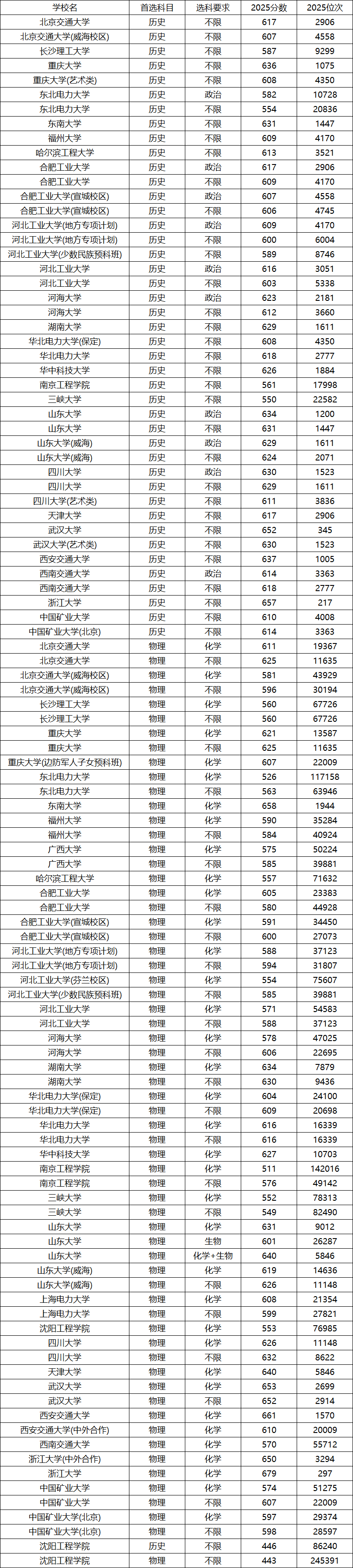 以河北省2025年高考为例,上述大学的录取分数线及位次如下: