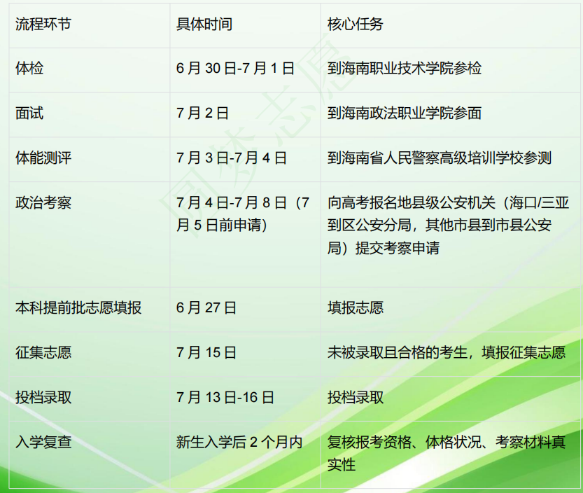 海南采用“高考-出分-测评-填志愿”的模式,即考生在知道高考分数后,先参加各项测评,合格后方有资格填报公安院校志愿。以下是关键步骤(基于2025年时间)。