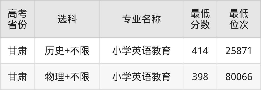 | 甘肃 | 物理 | 小学教育 | 391 | 83154 |