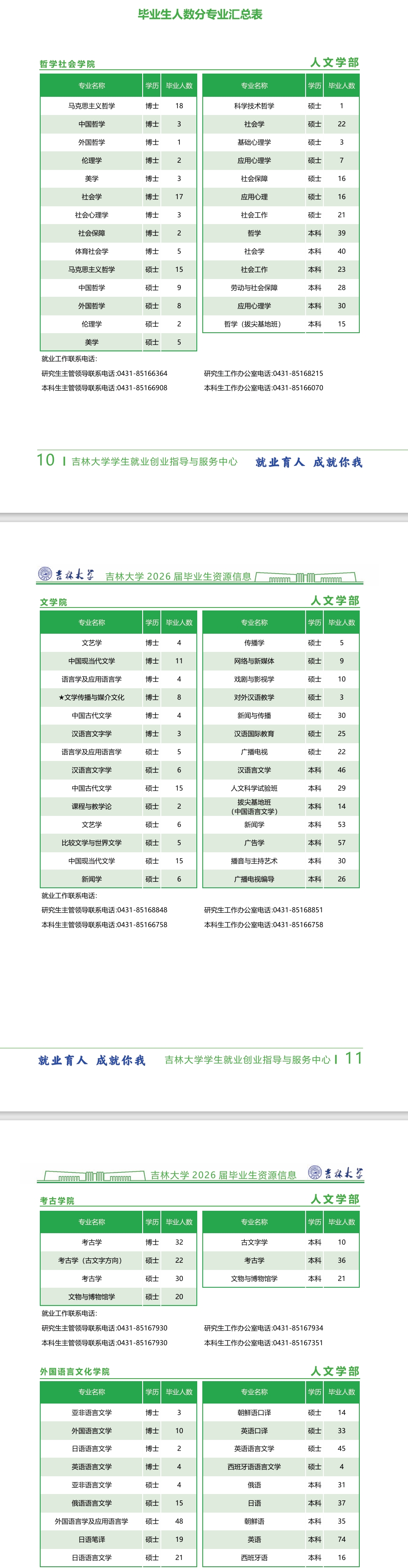 下方表格展示的是吉林大学的各个二级学院的毕业生人数、及本科各专业的毕业生人数汇总!