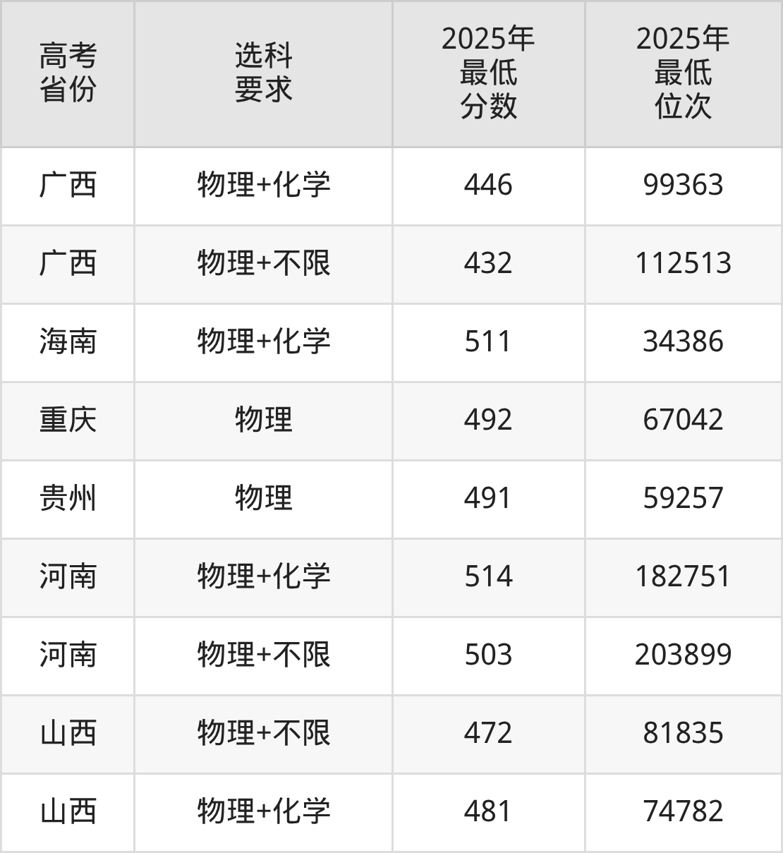 在2025年北京高考招生时,211收分最低的是石河子大学(01),最低分是513分、位次是33999位。再看青海理工学院,2025年在北京的最低录取分数线是434分,最低位次是53260位。
