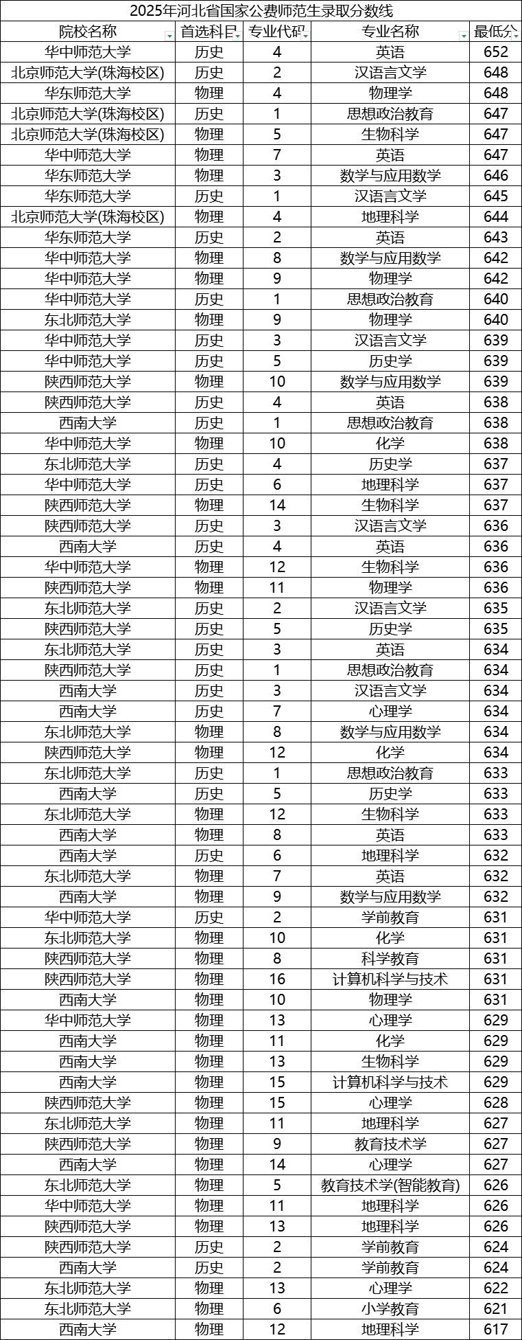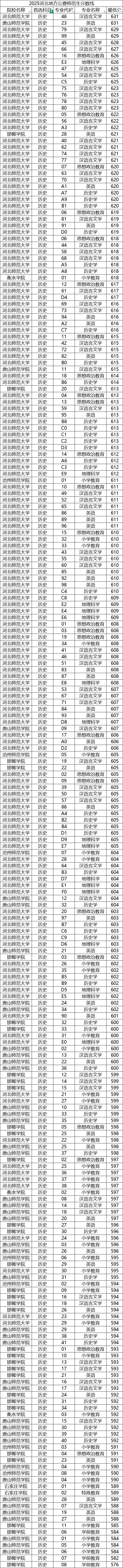 二、2025年河北省提前批国家公费师范生录取分数线