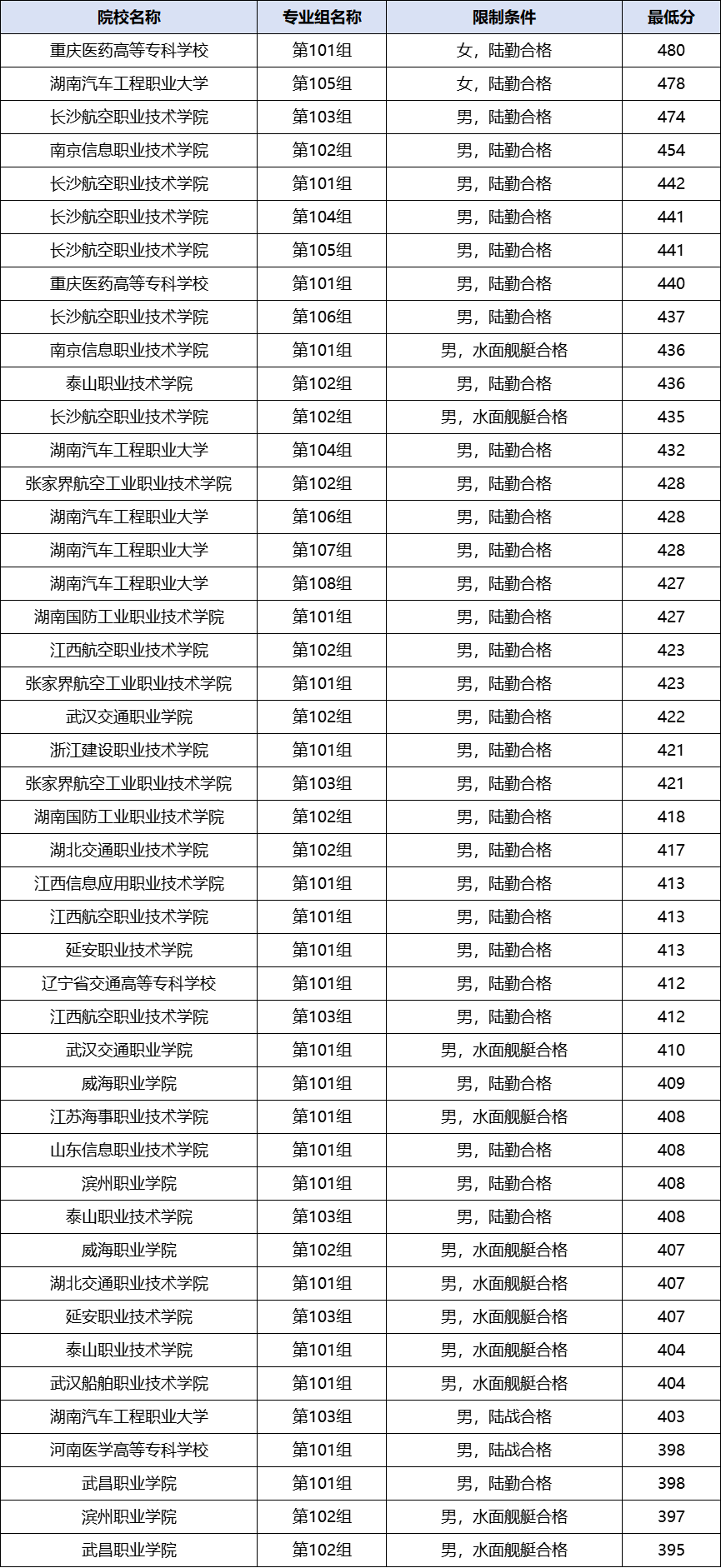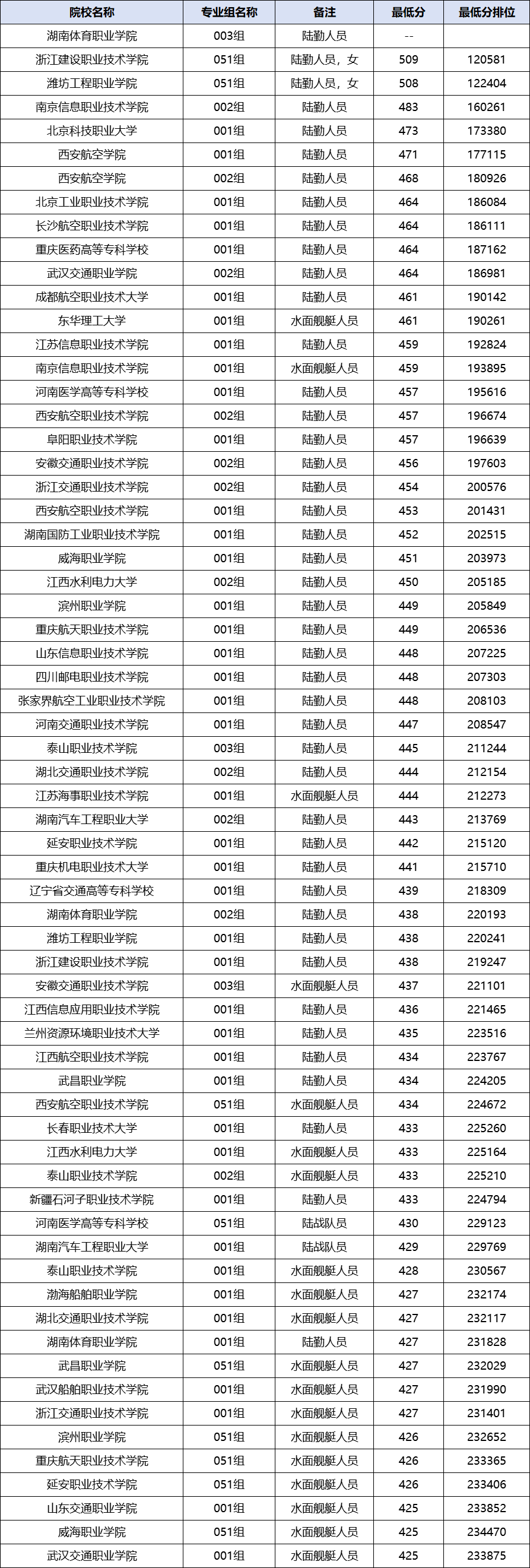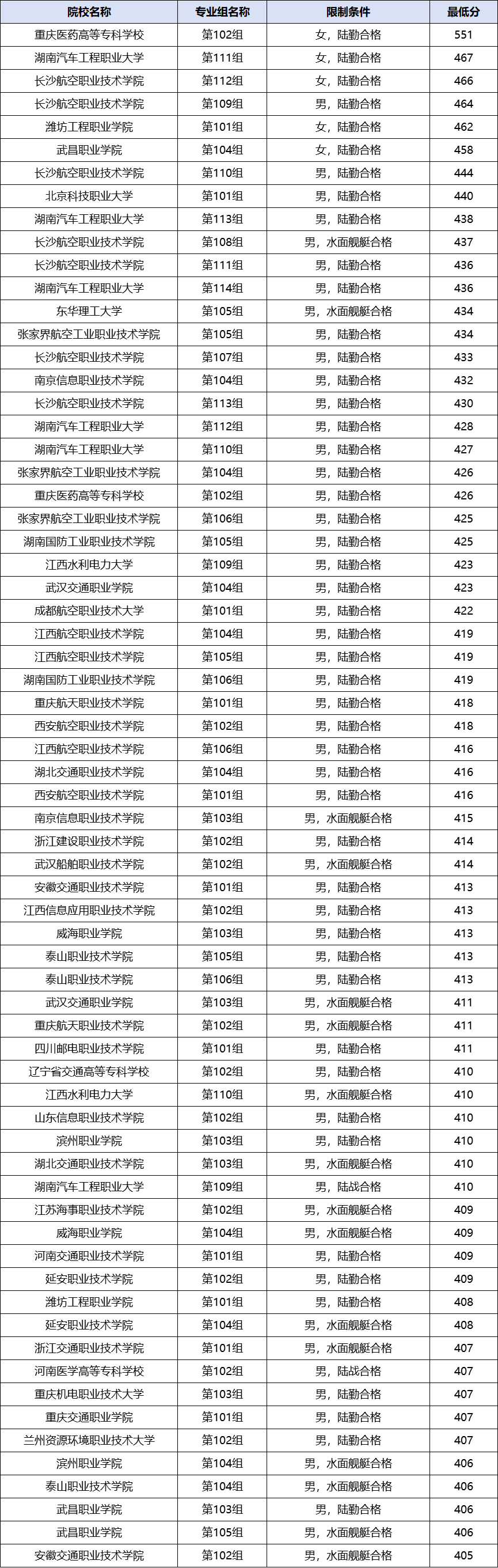 | 长沙航空职业技术学院 | 不限 | 01组 | 455 |