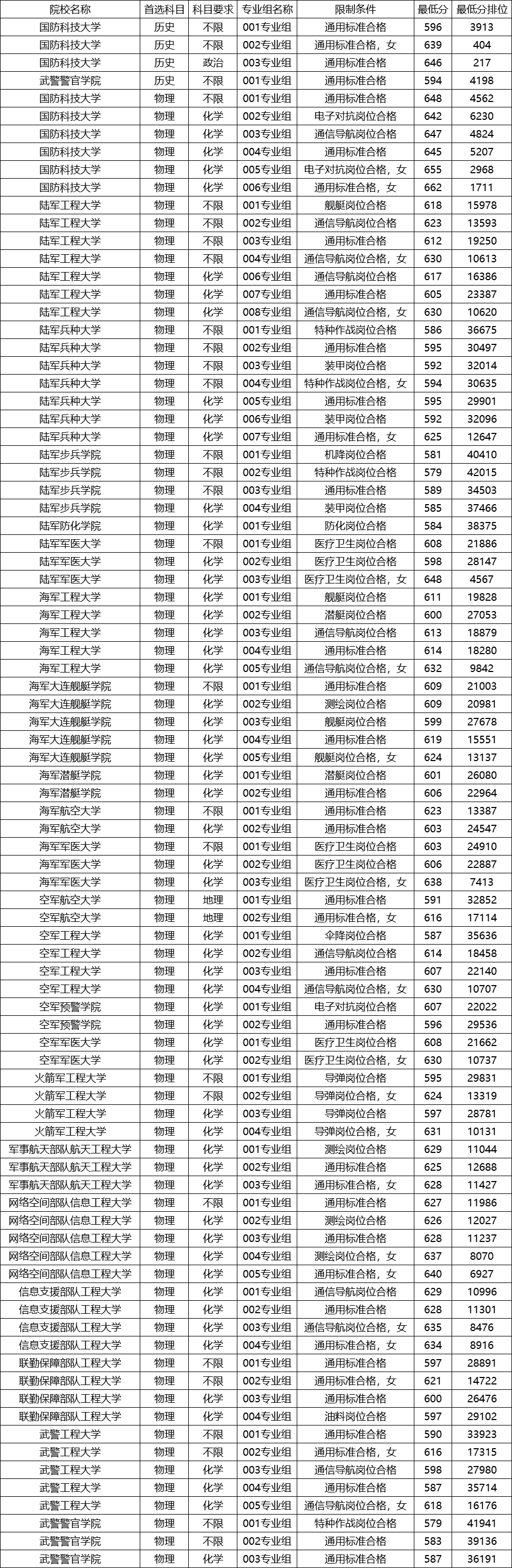 | 联勤保障部队 工程大学 | 物理 | 103 | 595 | 30690 |