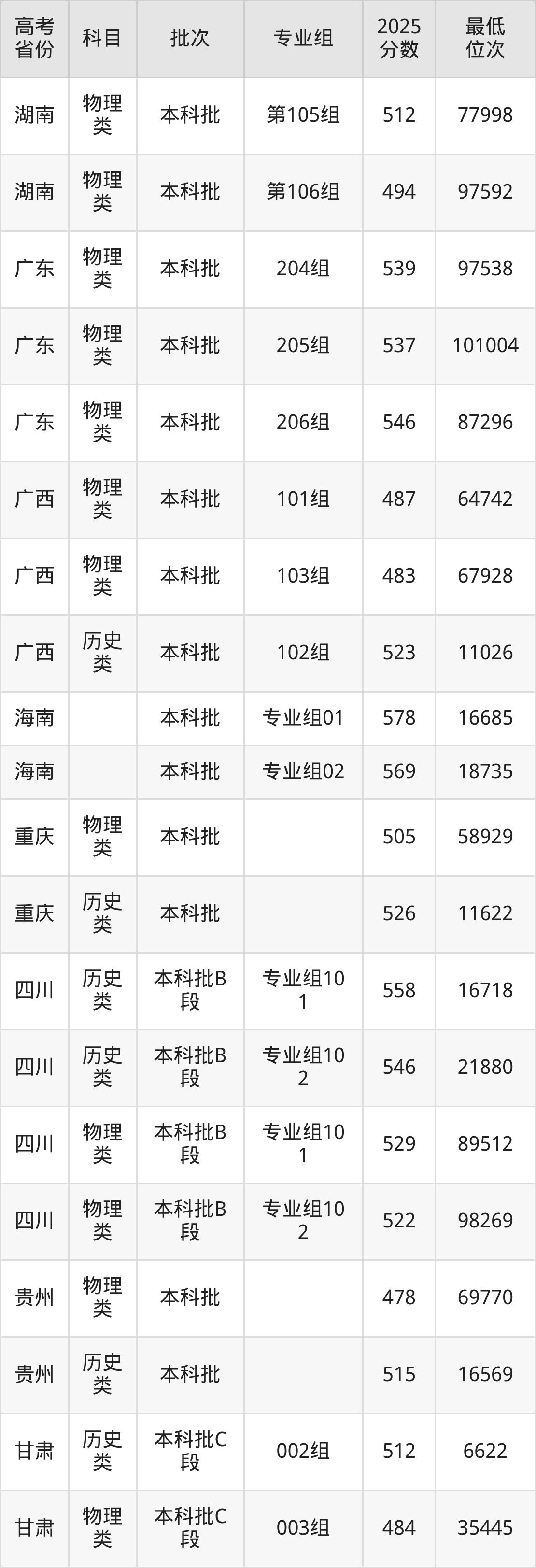 2026届高考生请重点参考下表,若你的高考成绩超过了山东理工大学往年在你省的最低录取分及位次,那么2026年被录取的概率也会比较高: