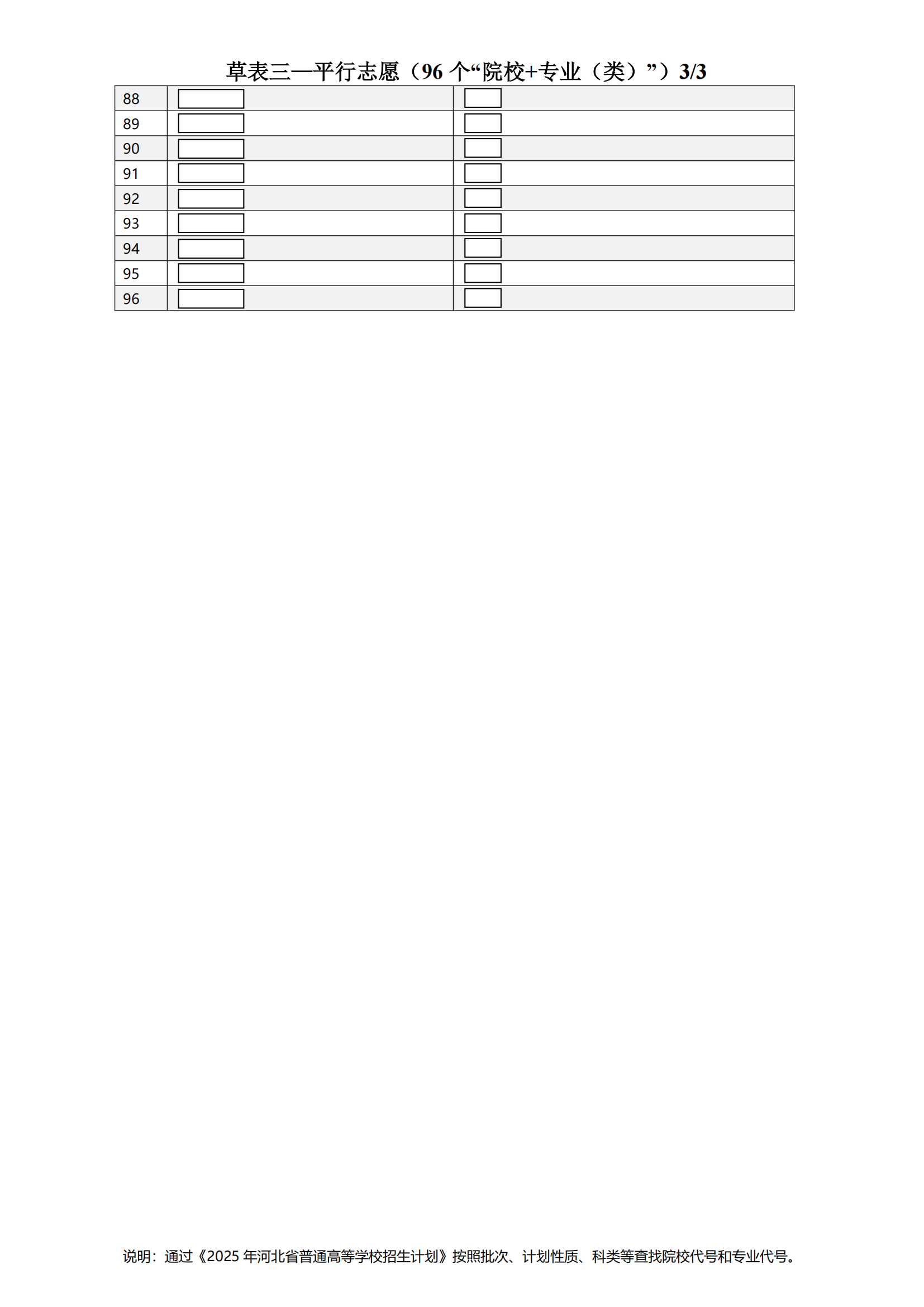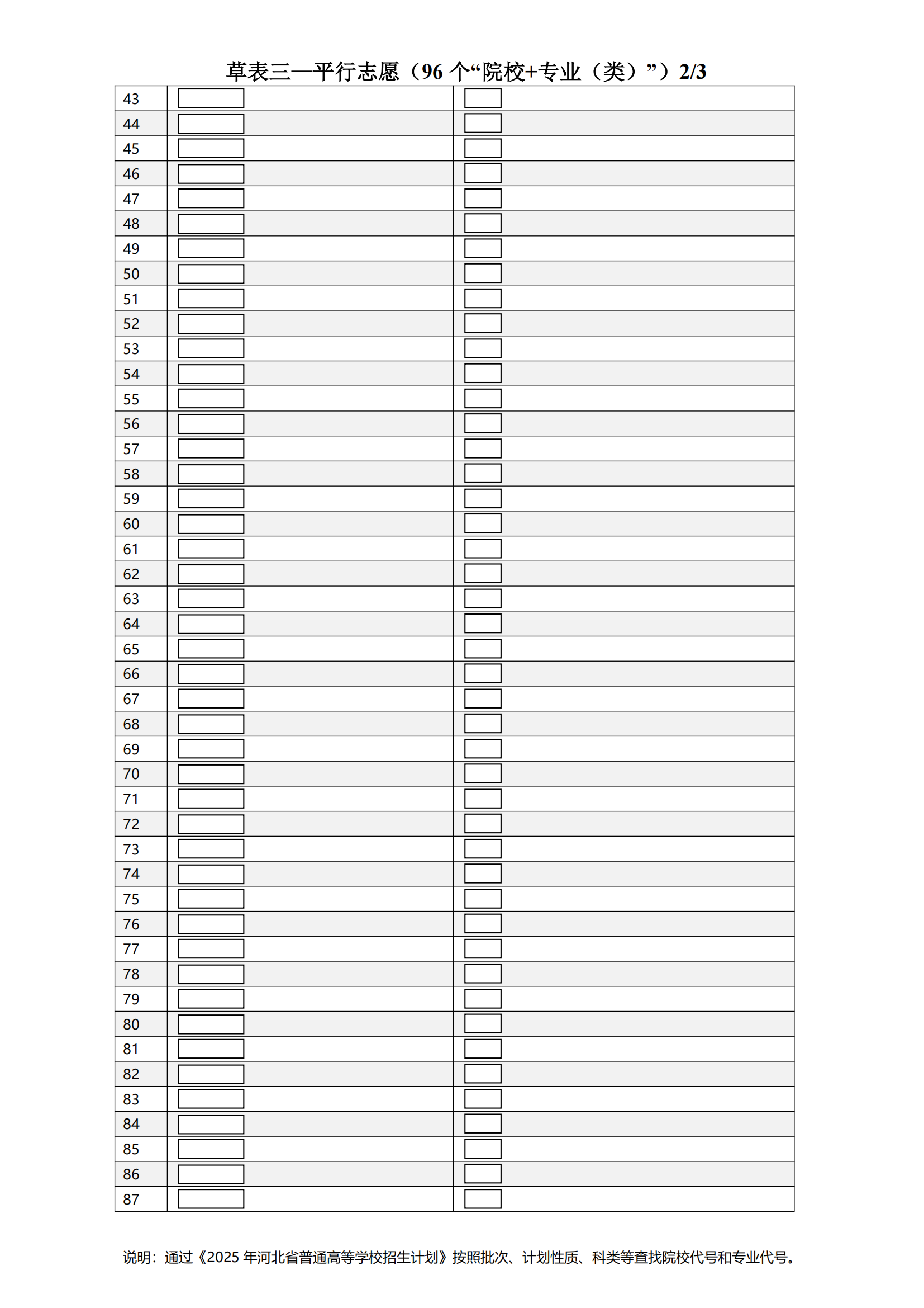 志愿样表下载官方入口:2025年河北省普通高校招生考生志愿填报草表
