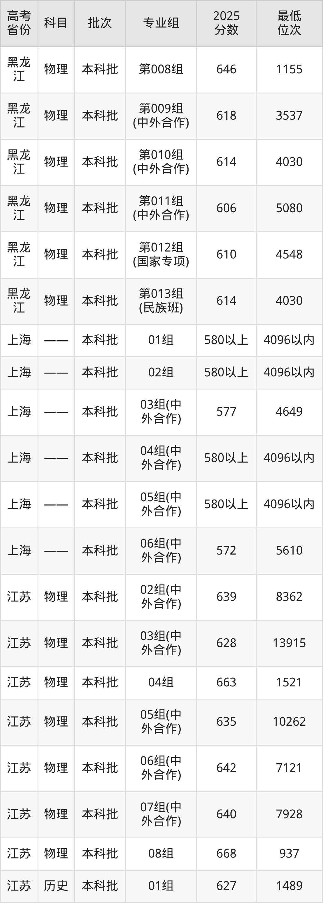 2026届高考生请重点参考下表,若你的高考成绩超过了哈尔滨工业大学往年在你省的最低录取分及位次,那么2026年被录取的概率也会比较高: