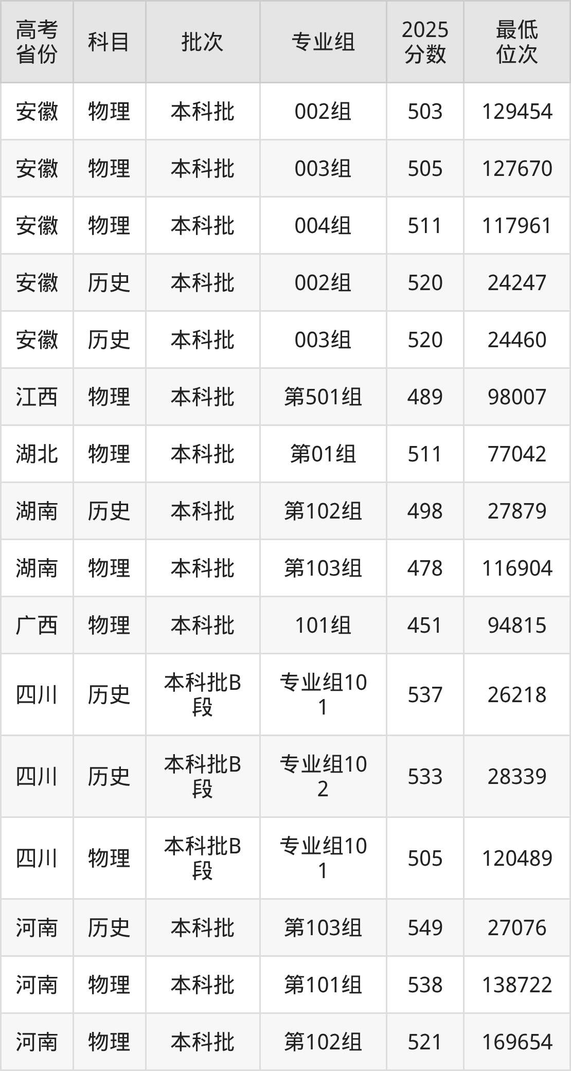 | 9115 | 物理 | 002组 | 36 | 法学 | 5060 |