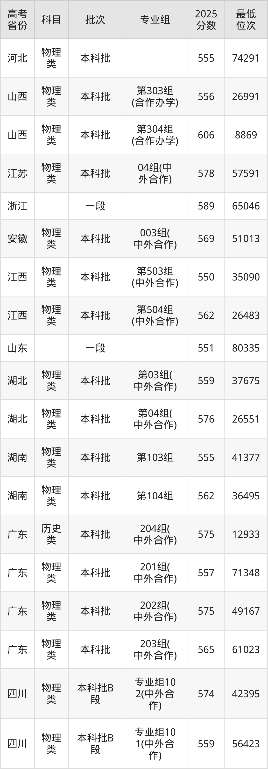 2026届高考生请重点参考下表,若你的高考成绩超过了深圳北理莫斯科大学往年在你省的最低录取分及位次,那么2026年被录取的概率也会比较高: