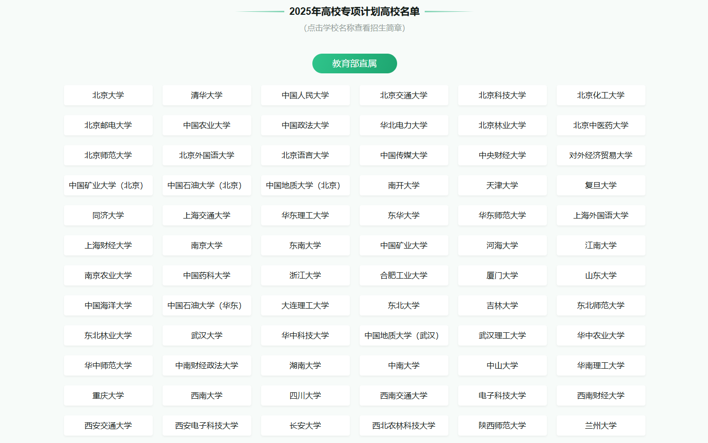 截至目前,2026全国高校专项计划招生简章还未正式公布,以下是2025年信息详情,供考生和家长参考!