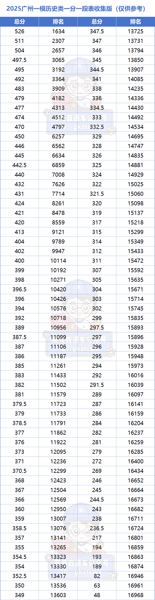 一分一段表是考生了解自己全市排位、评估目标院校的重要依据。目前2026年广州一模的一分一段表尚未发布,预计将在成绩公布后同步更新。以下为2025年广州一模物理类、历史类的一分一段情况,考生可据此大致判断自己的排位区间。
