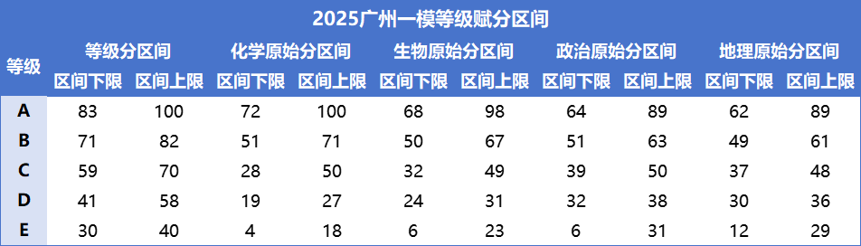 2026年广州一模选科赋分表待官方更新,2026届考生可先参考2025年赋分规则与数据,理解等级赋分逻辑。