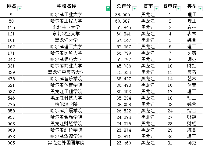 二、哈尔滨市大学排名一览表(金平果最新)