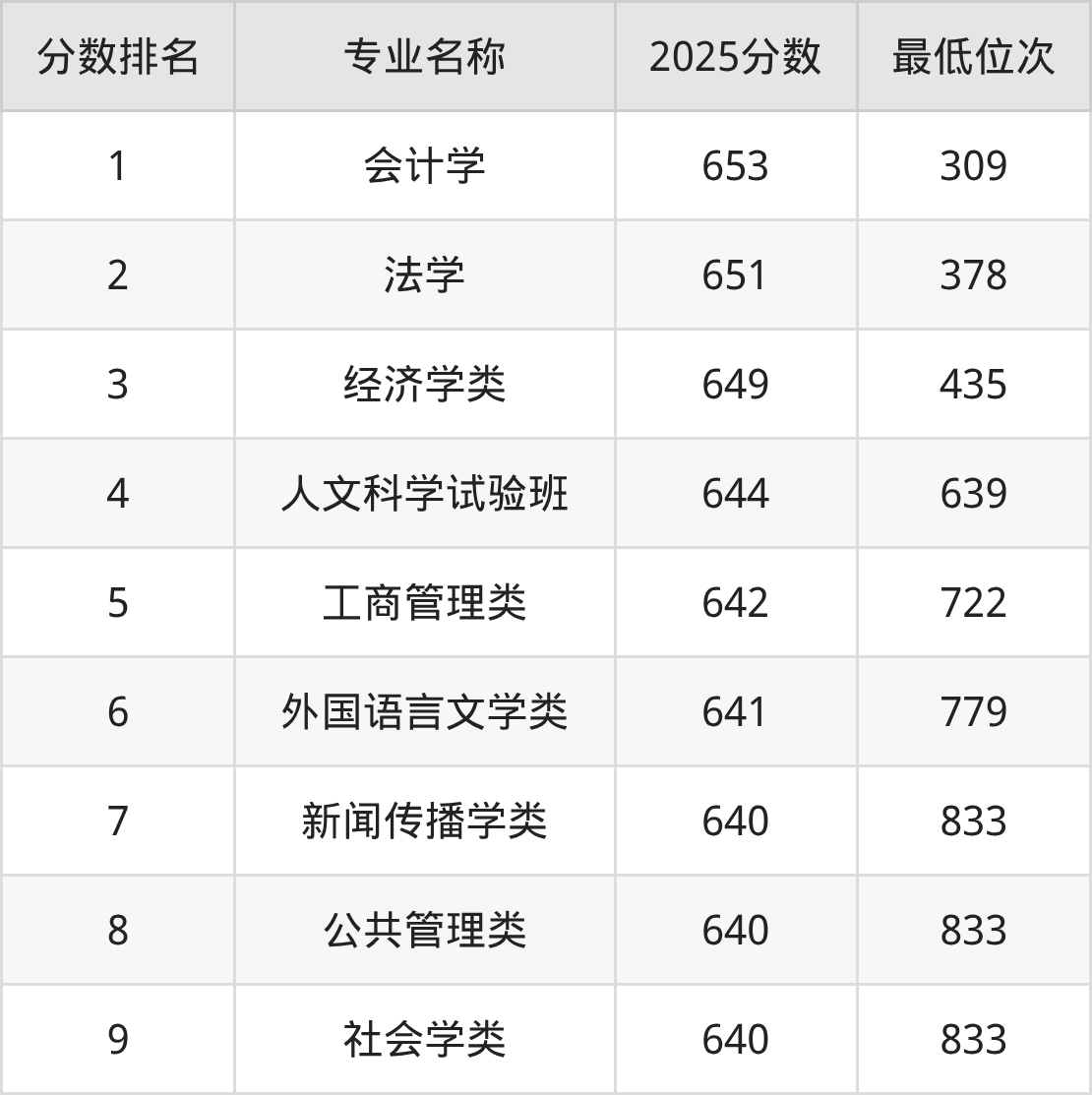三、厦门大学各专业录取分数线及位次