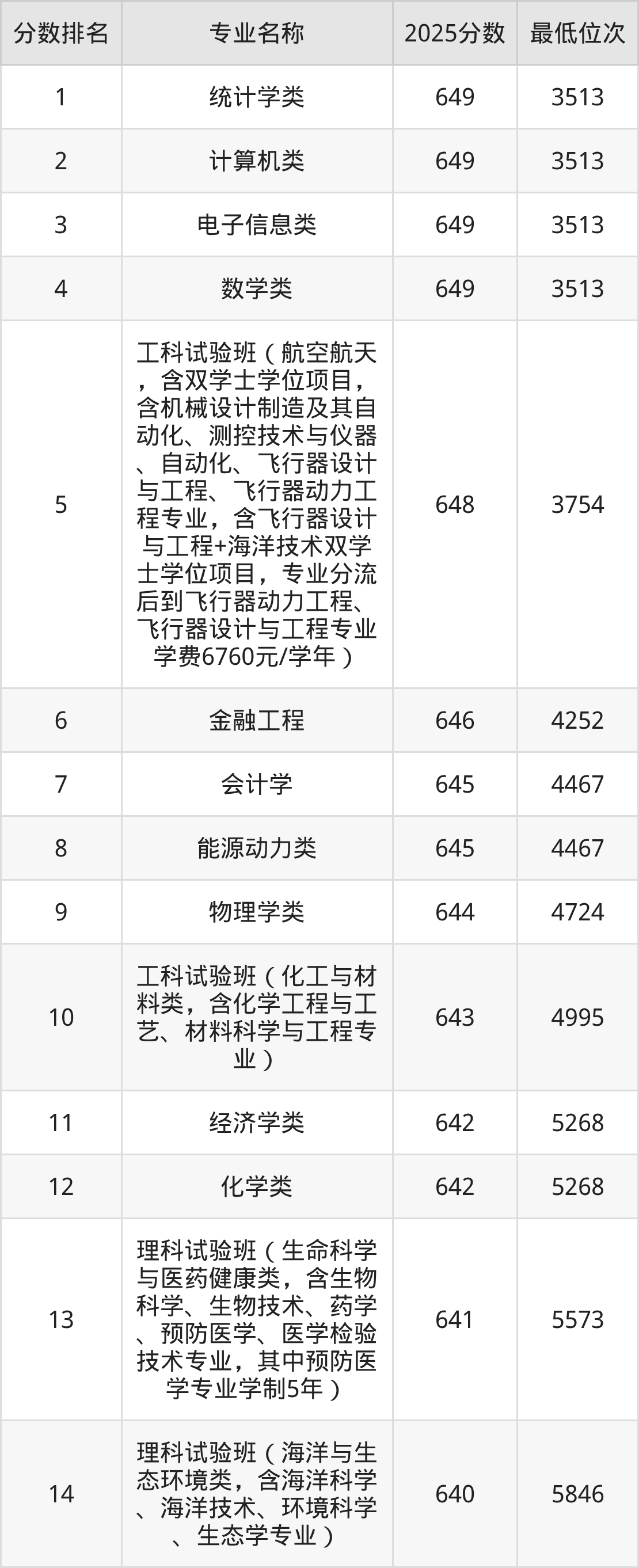 下图是厦门大学物理类各专业录取分数线一览表(14个专业):