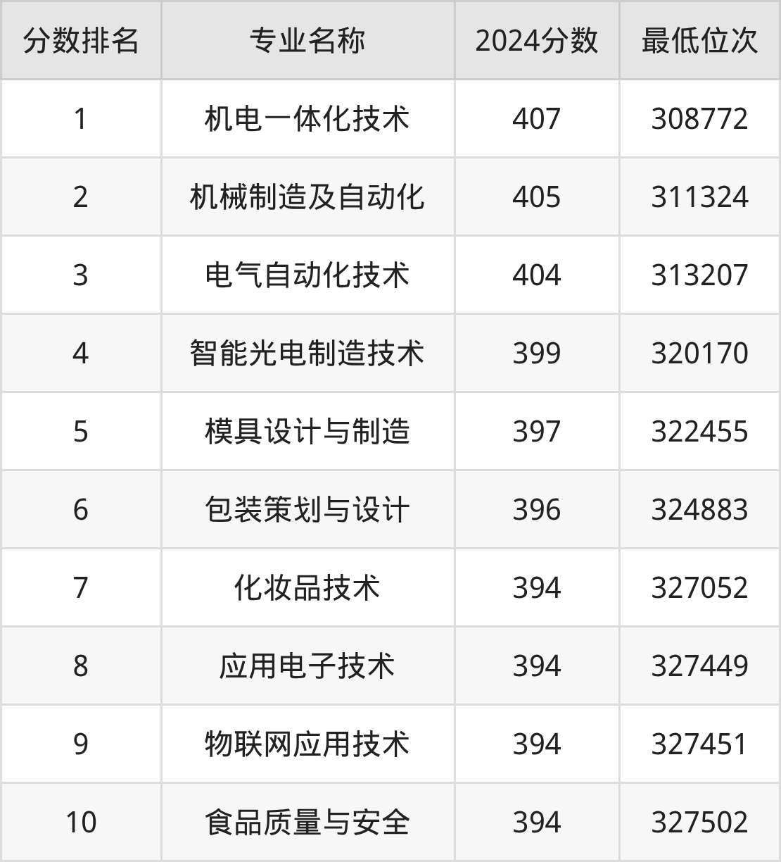 下图是中山火炬职业技术学院物理类各专业录取分数线一览表(10个专业):