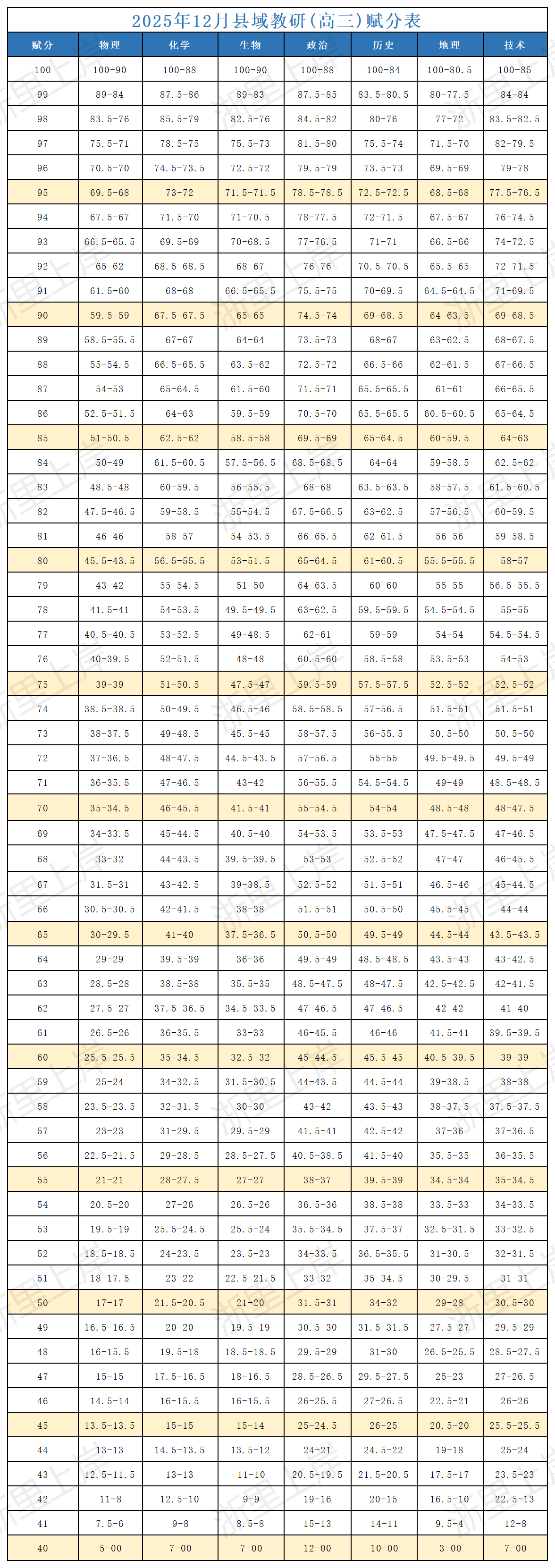 同时,官方也给出了详尽的单科等级赋分区间表,如物理原始分90分以上可赋100分,技术85分以上可赋100分,为考生计算预估总分提供了精确依据。