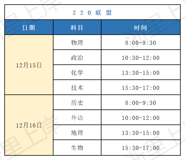 3.Z20联盟(全省重点中学联盟):定于12月15日至16日举行,是本月压轴的重要联考。