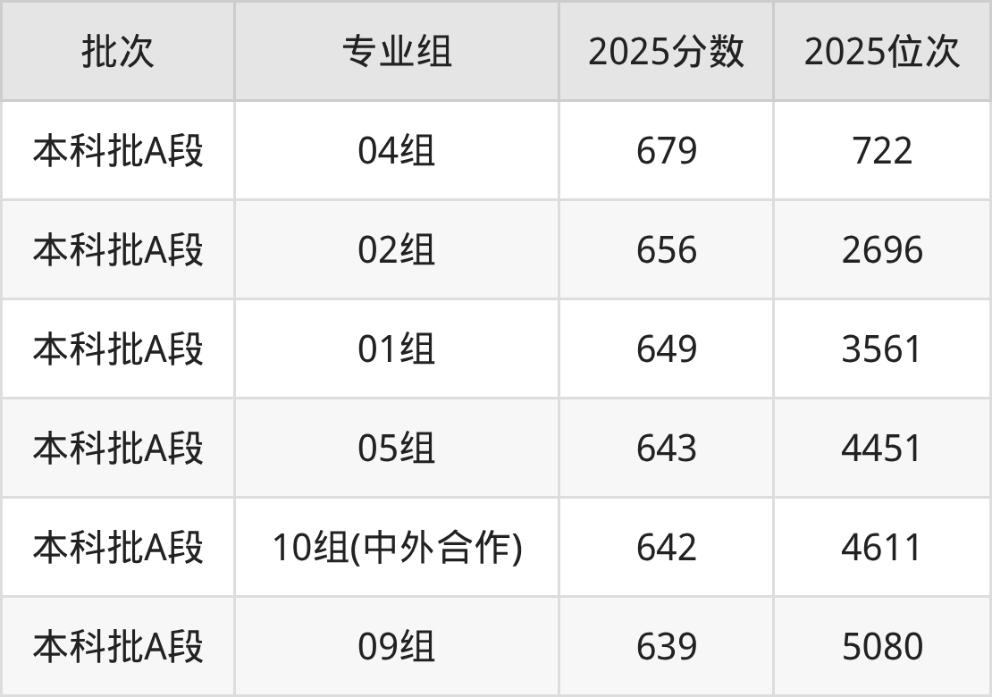 | 专业组 | 专业 代码 | 专业名 | 2025 招生 人数 |