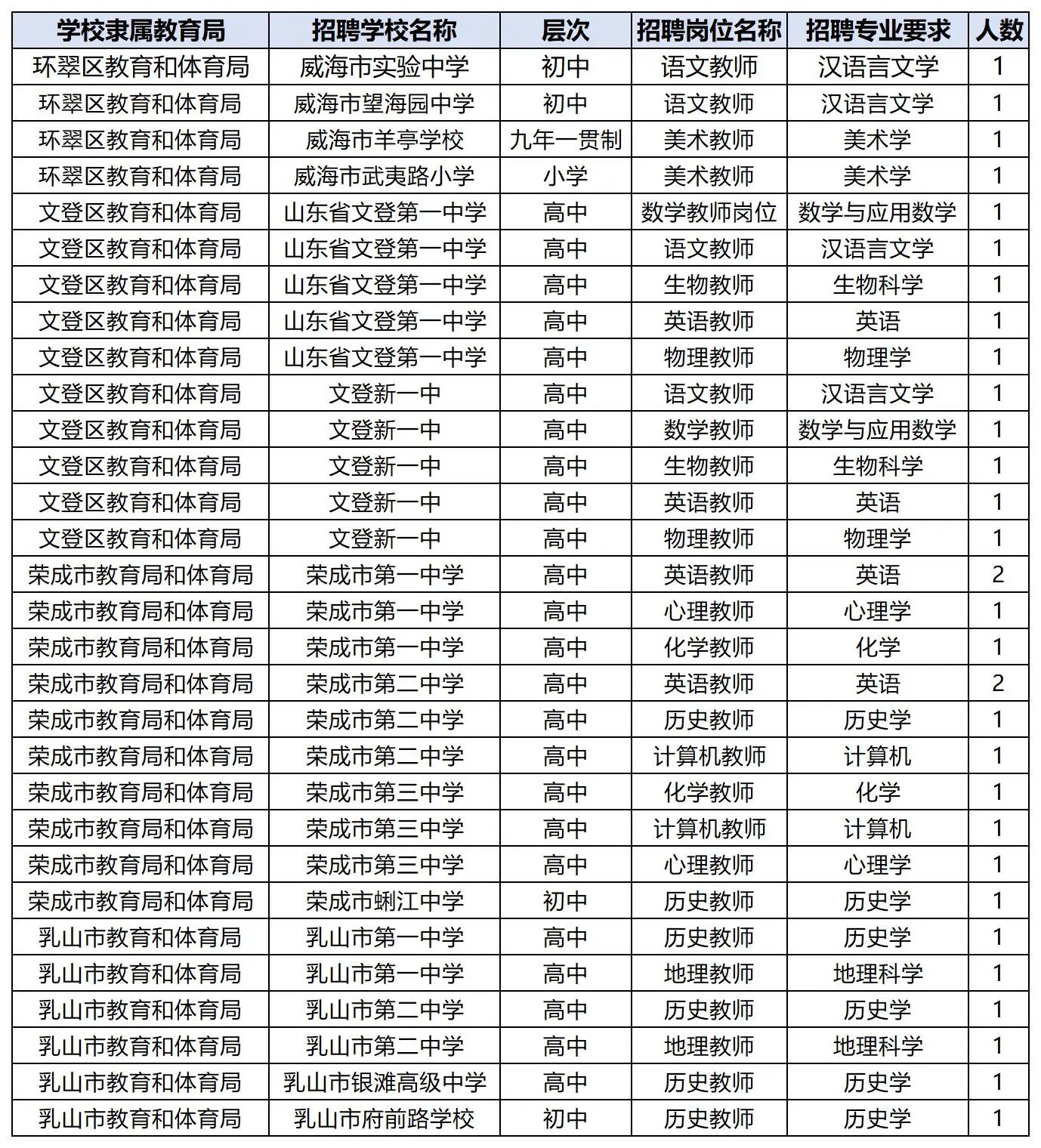 荣成二中:英语2、历史1、计算机1。