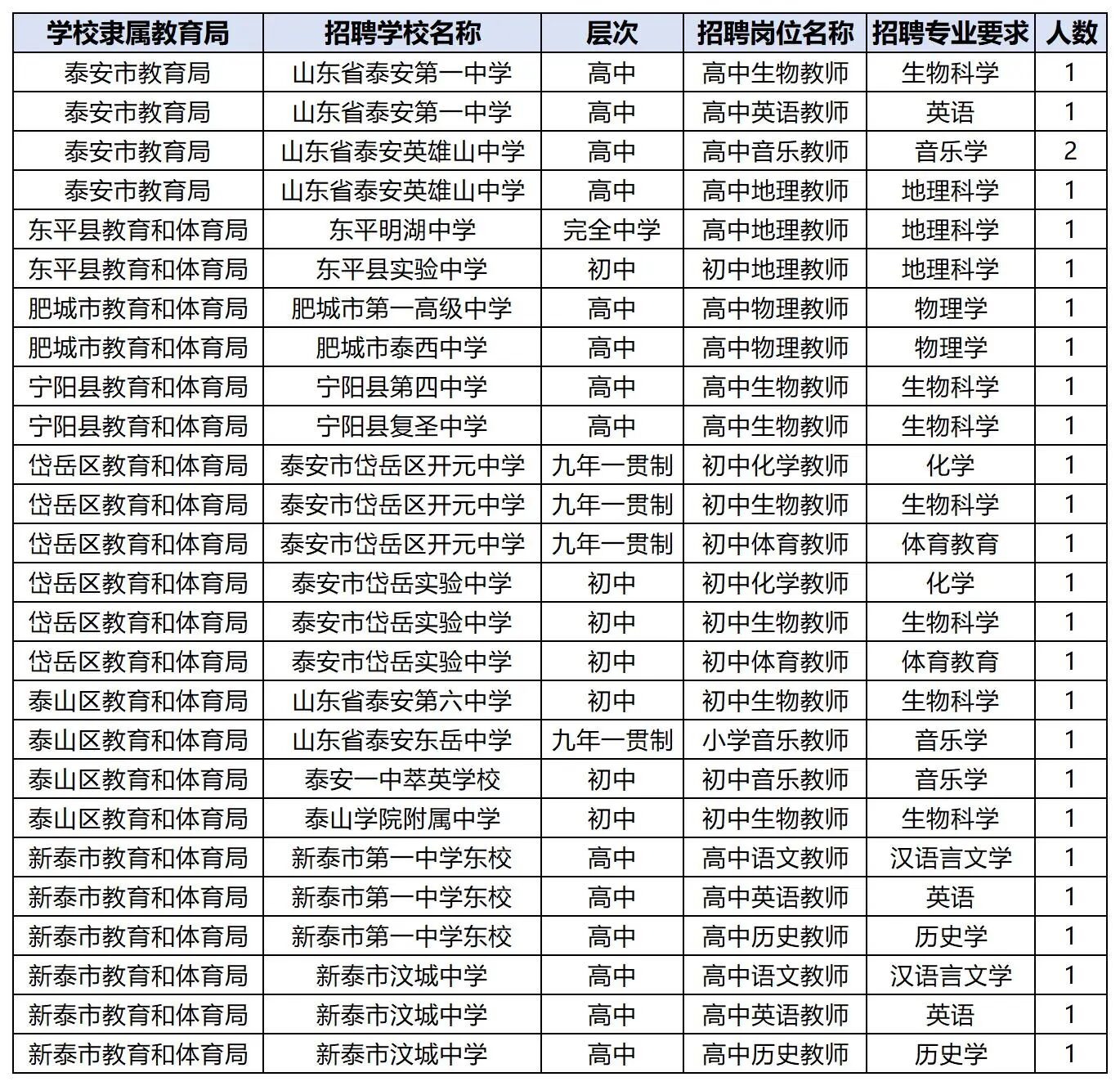 岱岳区开元中学:化学、生物、体育各1。