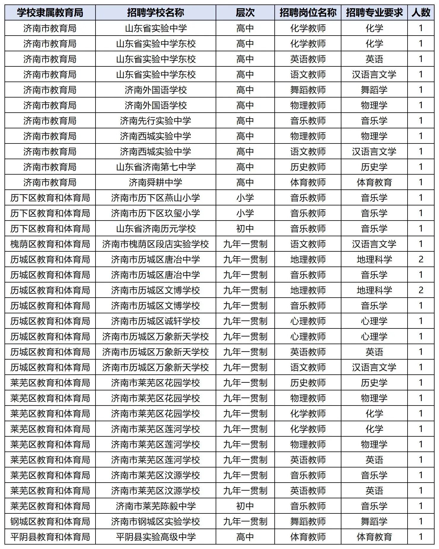 历下区燕山小学、玖玺小学:音乐教师各1人。