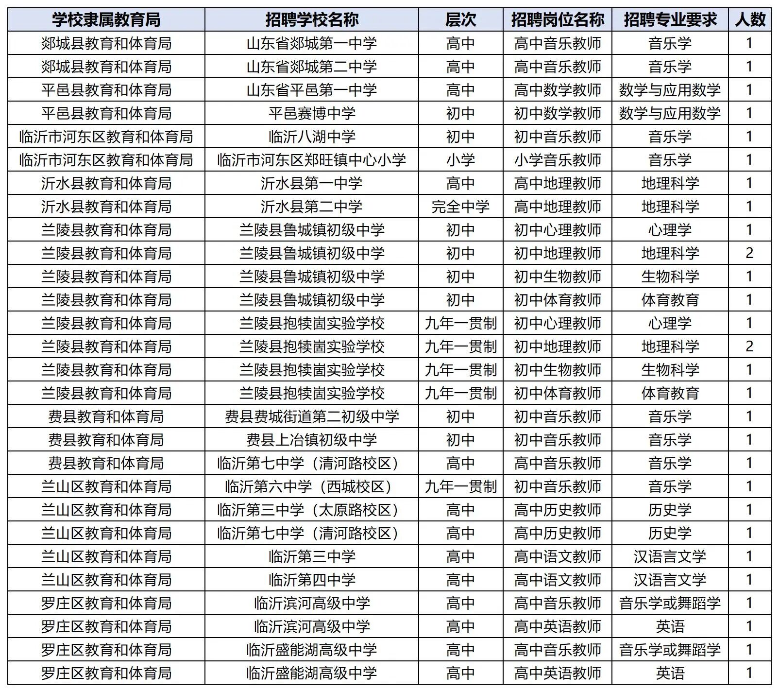 临沂多所学校招聘音乐、地理、心理等紧缺学科: