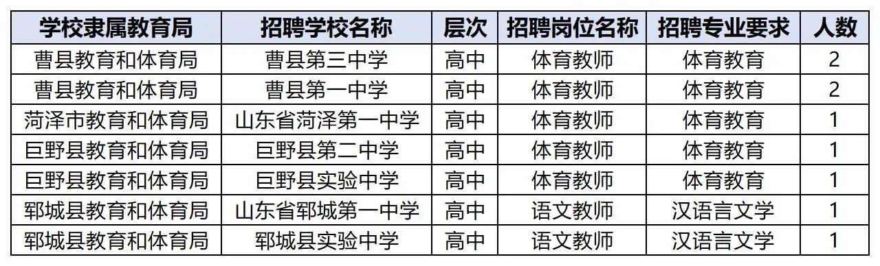 巨野二中、实验中学:体育各1。