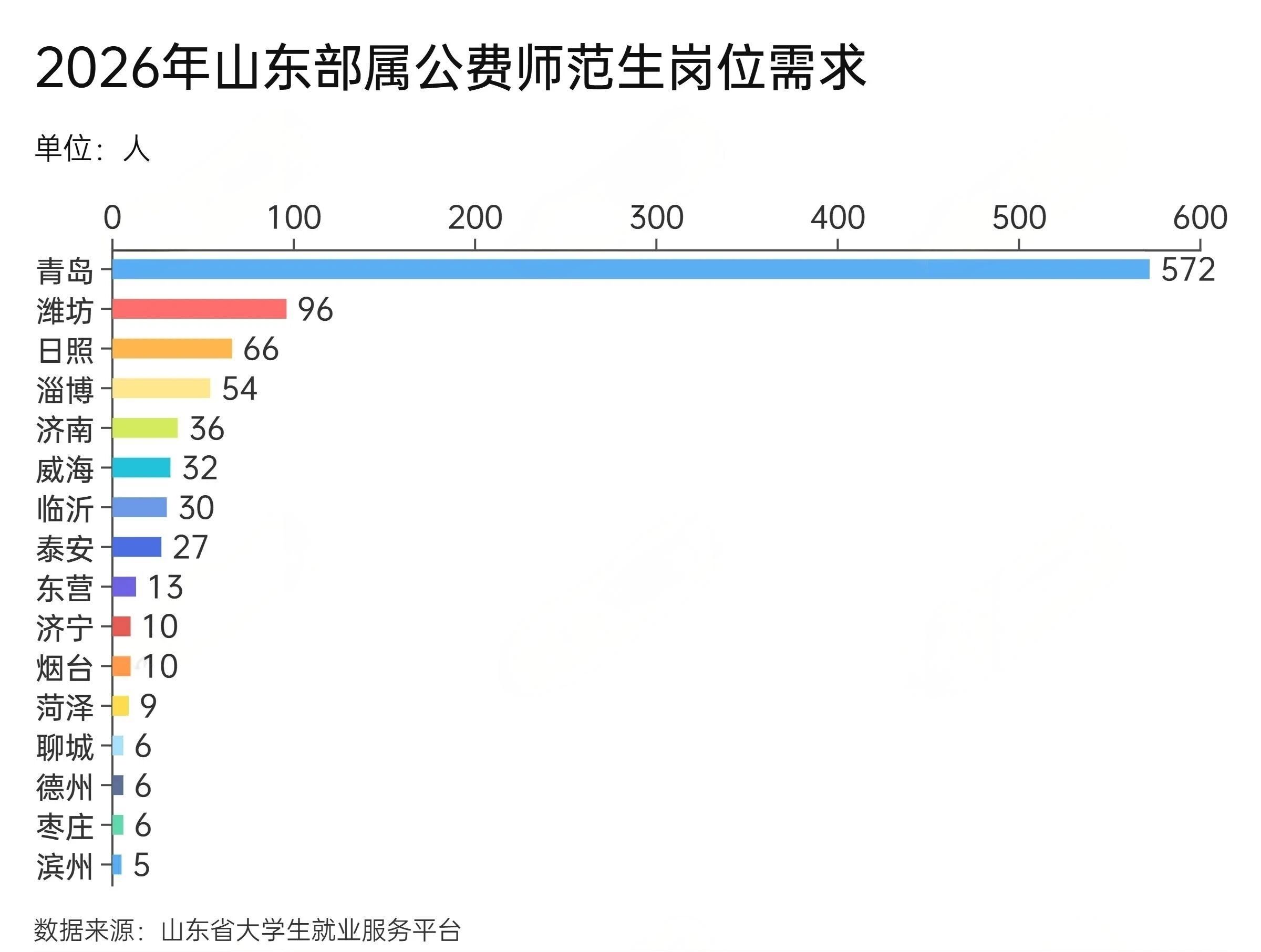 青岛以572个岗位位居首位,占全省总量近六成;潍坊(96人)、日照(66人)、淄博(54人)也提供了较多机会;济南因部分岗位提前招聘,本次统计为36人,但实际机会不少;威海、临沂、泰安等地均在30人左右,其他地市如东营、济宁、烟台等也有10个以上岗位。可以说,全省各地都有岗位,但青岛无疑是“主战场”。